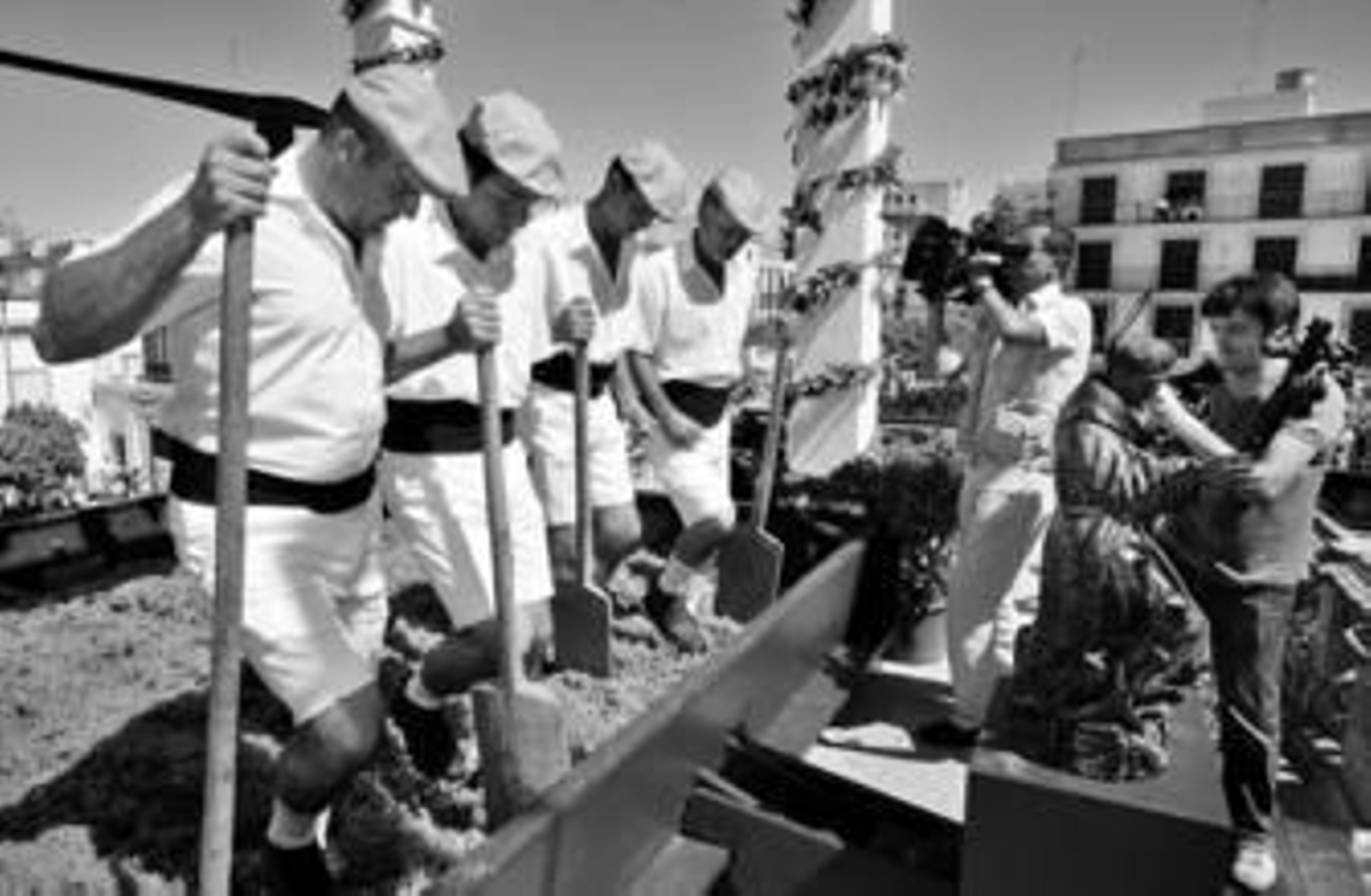 Uno, dos, uno dos... No es una parada militar. Es el ritmo que se marcan los pisadores hasta que el mosto llega a la piquera. Repican las campanas a los sones del himno de la vendimia y se sueltan cientos de palomas para anunciar a los cuatro vientos el nacimiento del vino del año, también a los cientos de jerezanos y visitantes convocados por el Ayuntamiento al acto inaugural de las Fiestas de la Vendimia, que tenían que adivinar lo que ocurría unos metros más arriba, en el reducto de la Catedral, en el que todo el ceremonial se había dispuesto de cara a la tribuna de autoridades.