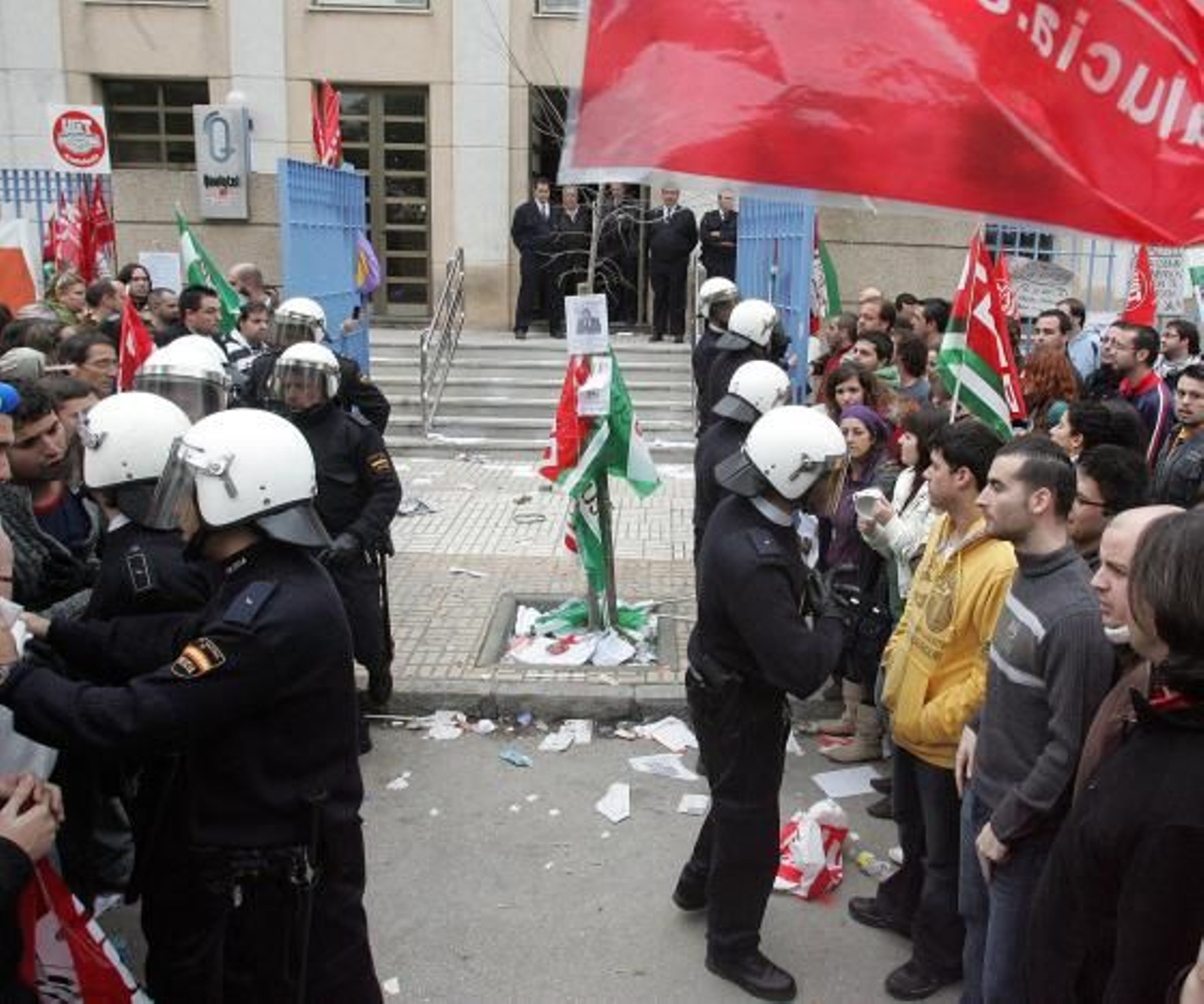 Agentes de la Policía Nacional se apostaron a la entrada del centro universitario para vigilar la entrada y evitar nuevos percances. Mientras, una pareja de la Policía local cerró un carril de la avenida al tráfico ya que los manifestantes invadieron parte de la calzada.