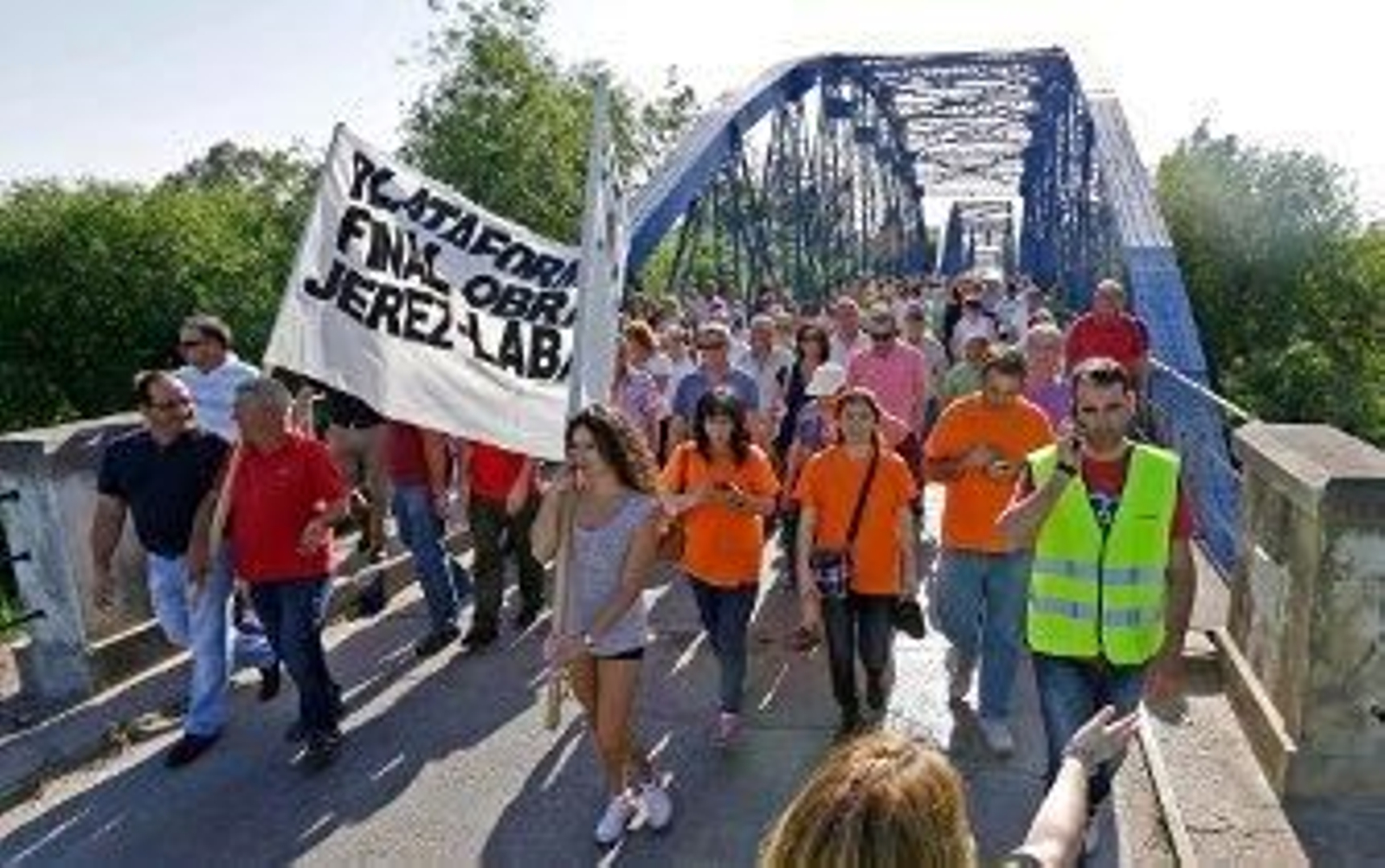 La Plataforma A-2003 celebró ayer una marcha a pie junto a la carretera para reivindicar que se retomen las obras de esta vía que une Jerez con distintos núcleos rurales. La manifestación partió del recinto ferial de La Barca y culminó en la venta del cruce con la participación de más de un centenar de personas.