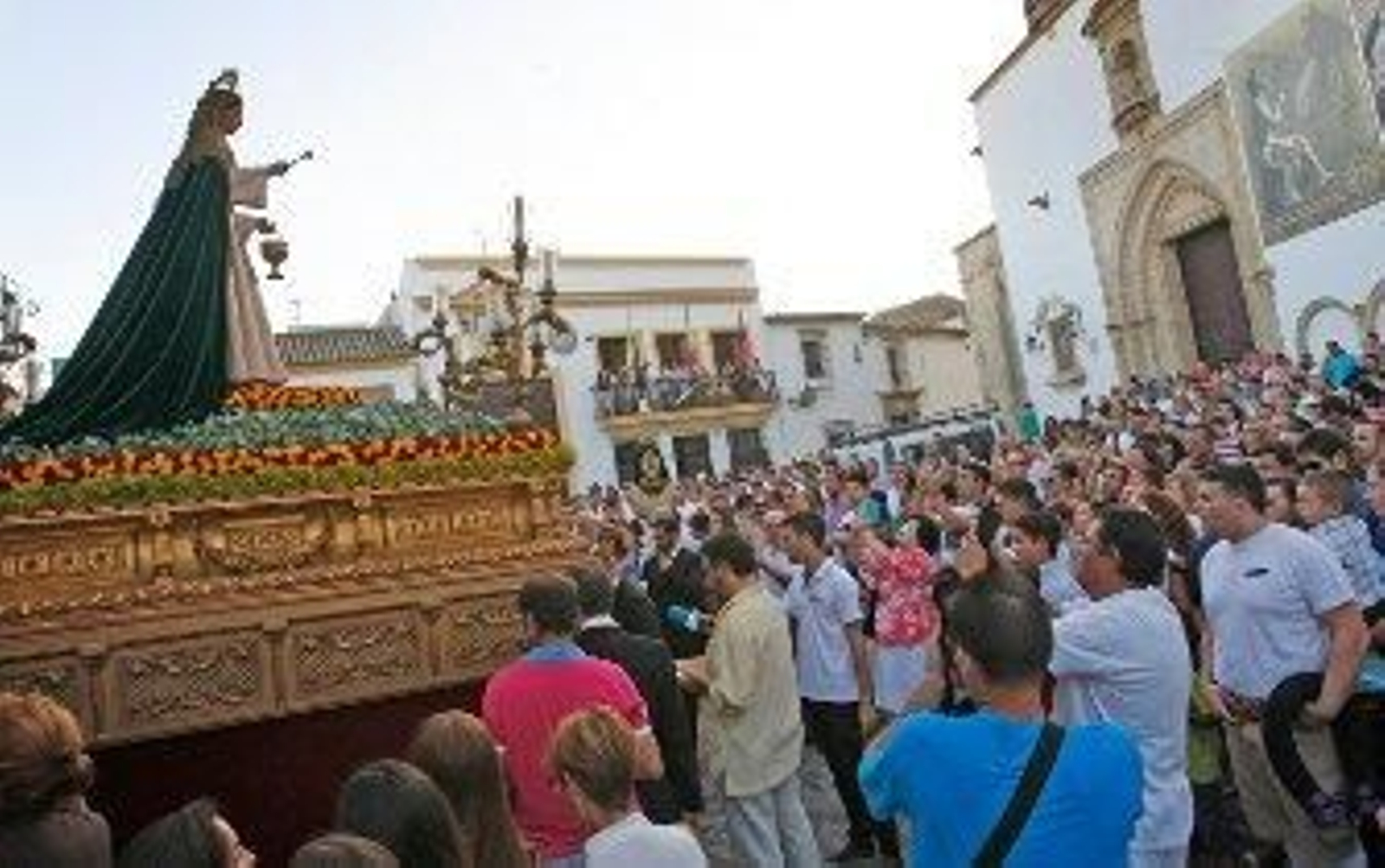 La procesión de Santa Marta puso ayer el epílogo al ciclo de procesiones de gloria en la ciudad hasta la llegada de septiembre, mes en el que llegarán las celebraciones de la Virgen de la Merced. La Santa Hospedera salió a las calles de la mano de la hermandad del Traslado al Sepulcro, rindiendo culto público a una advocación que forma parte de los titulares de la cofradía y que goza de una extensa y popular devoción, lo que se puso de manifiesto como cada 29 de julio en las calles por donde pasó la procesión, un amplio itinerario que llegó desde San Mateo, con la salida desde la capilla de la hermandad, para alcanzar incluso la calle Porvera. Y desde Chancillería entrar de nuevo en los dominios de San Mateo. Evidentemente, este trazado procuró pasar por zonas donde bares y otros negocios hosteleros tienen un singular protagonismo. Santa Marta fue en el paso de San Blas de la hermandad del Desconsuelo, cedido para la ocasión, portado por las cuadrillas de costaleros de la hermandad a cuyo frente estuvo como capataz Jesús Sánchez Lineros. Junto a la obligada representación corporativa del Traslado al Sepulcro, en el cortejo también figuraron devotos y hermanos junto a una representación profesional e institucional del sector de la hostelería sobre la que tradicionalmente la Santa ejerce su patrocinio. Como complemento musical, la formación que fue tras el paso fue la vinculada a la hermandad, la banda del Cristo de la Caridad.