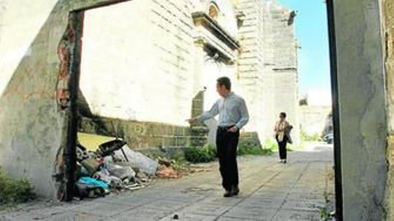 El recorrido culmina en San Juan de los Caballeros, en Siete Revueltas, que se ha convertido en un auténtico basurero. Una zona con visos turísticos que se ha quedado como aparcamiento, surgido de calles tapiadas. "¿Cómo vamos a traer a un turista aquí? En Jerez tenemos los retretes al aire libre con más valor de España porque la gente hace pipí en las esquinas de los templos y en casas como ésta, del siglo XV", critican. "Un lateral de tan exquisito edificio sagrado, junto a una puerta renacentista y frente a una portada que perteneció al primer enclave de las Monjas de Gracia, sito en el palacio de la Fundadora, no puede estar en estas condiciones. Dicha puerta, cuyo molduraje termina antes de llegar al suelo, es de finales del XV", denuncia Esperanza.
