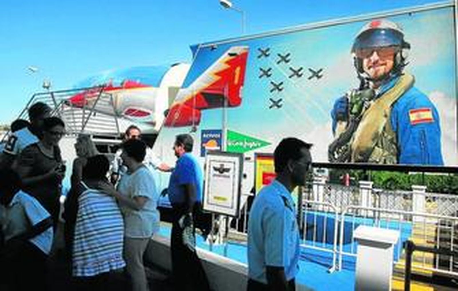 El Corte Inglés acogió ayer y lo hará también hoy al nuevo simulador de vuelo de la Patrulla Águila, la escuadrilla acrobática del Ejército del Aire, que está realizando un circuito por varias ciudades. El simulador está instalado junto a la entrada del centro comercial y al mismo se podrá acceder gratuitamente en grupos de 14 personas como máximo. El simulador, cuya tecnología tiene sus orígenes en el sector aeroespacial, permite disfrutar de una experiencia única y emocionante, al reflejar perfectamente los movimientos radicales e increíbles piruetas que realizan los pilotos de la Patrulla Águila, una de las más prestigiosas en el mundo de la acrobacia aérea. El simulador acerca las sensaciones de los pilotos en los mandos de una aeronave a los no iniciados, mediante la proyección de una filmación de gran impacto visual. Los pasajeros disponen de asientos diseñados ergonómicamente que proporcionan una vista de la pantalla sin obstáculos.