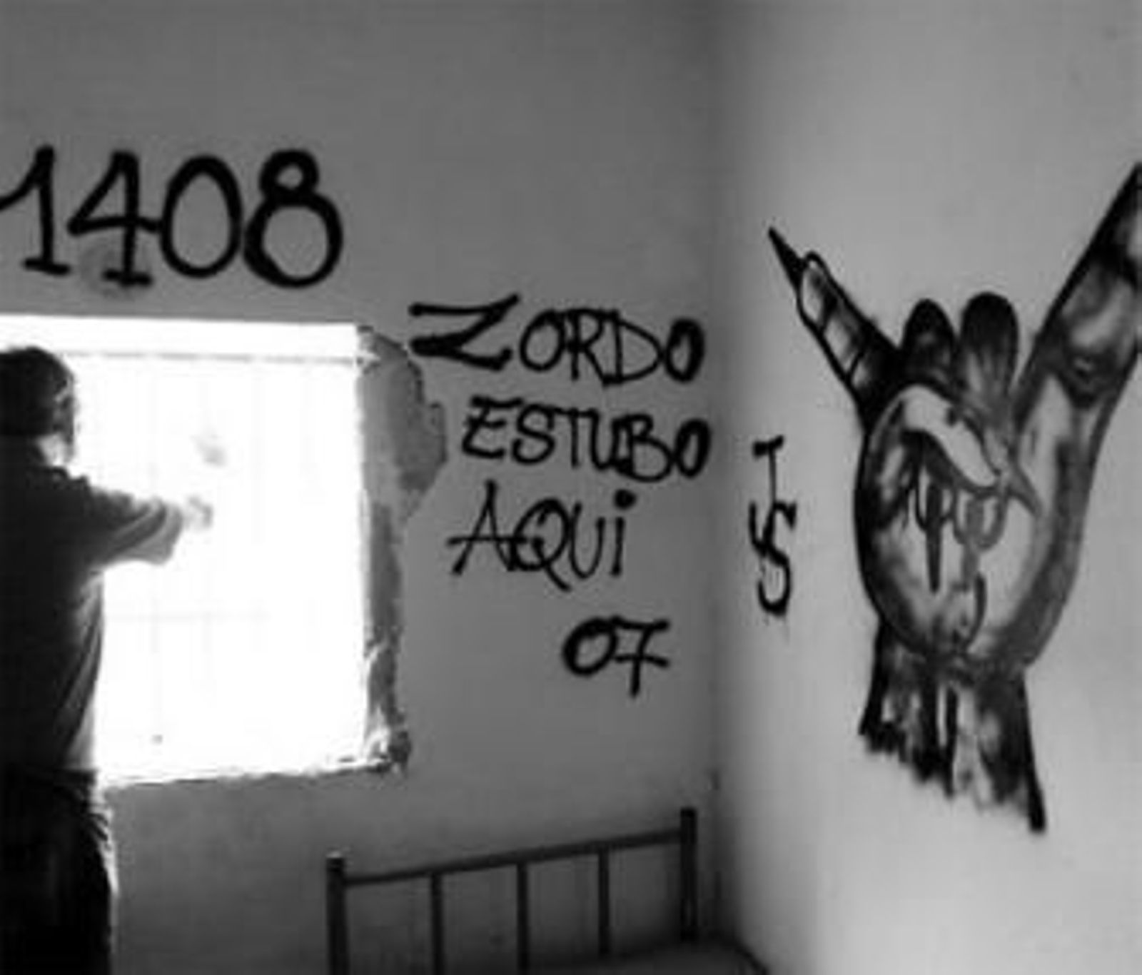 En el suelo se entremezclan los restos de las pizzas que dejaron allí sus visitantes nocturnos, así como alguna que otra guapa ligera de ropa que en su momento adornó la pared de alguna celda. Como en sus buenos tiempos, esta inmensa sala tan sólo hace las veces de recepción. Los problemas se agravan conforme avanzas por el interior. Celdas incendiadas (que han provocado dos intervenciones de los bomberos) y destrozos absolutamente salvajes te hacen ver que la vieja cárcel se ha convertido en un peligro público, más aún si se osa visitar algunos de sus pequeños patios interiores, donde los pastos acumulados se erigen en una tea en potencia.