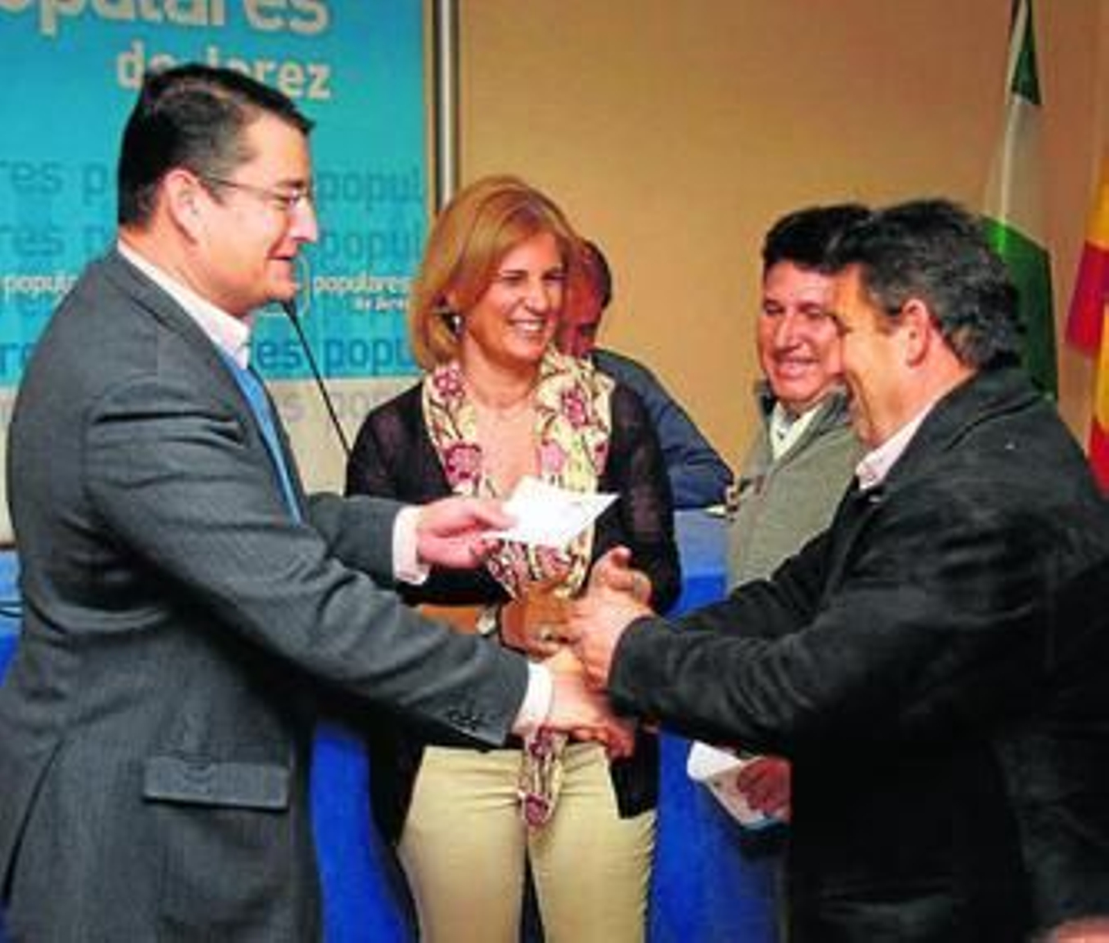 El Hotel Tryp acogió ayer el acto de entrega de carnés a nuevos militantes del PP, con la presencia del secretario andaluz del partido, Antonio Sanz, y la candidata a la Alcaldía, María José García-Pelayo. "Hoy demostramos que somos un partido vivo, cada día más grande, abierto a los vecinos de Jerez, preparado para gobernar y unido", recalcó Sanz, antes de que diera comienzo el acto. Con tono optimista, el secretario andaluz del partido aseguró que la entrega de carnés demuestra que "cada vez somos más el grupo de populares jerezanos y cada vez más jerezanos apuestan por el cambio político en la ciudad y quieren ser protagonistas activos de ese cambio". Por ello, hizo un llamamiento a todos los ciudadanos "para que den un paso valiente y adelante para convertirse también ellos en protagonistas del cambio".