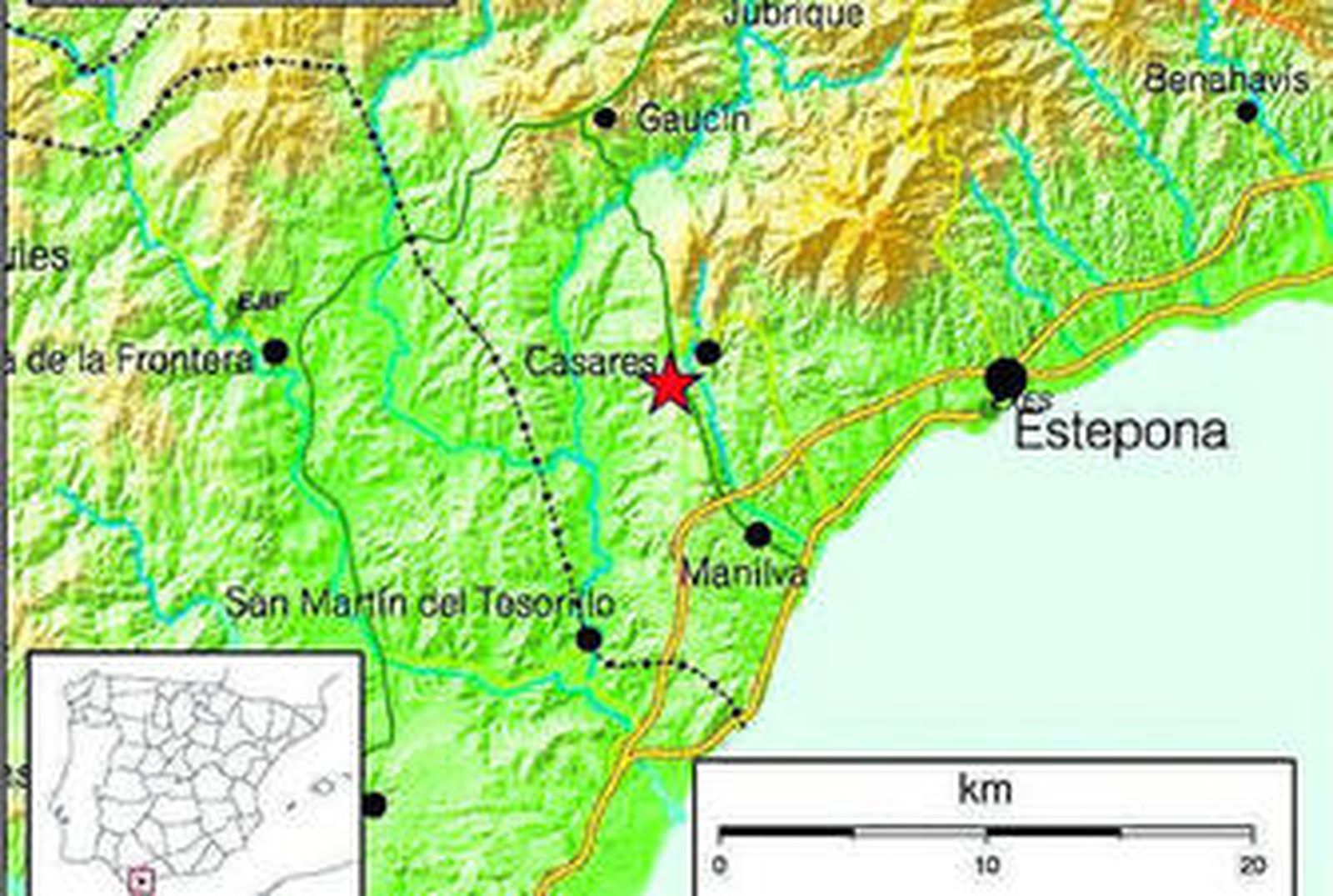 El seísmo tuvo una profundidad de cinco kilómetros, con epicentro al suroeste de Casares y ocurrió a las 6:05 horas. También se pudo sentir en Estepona.