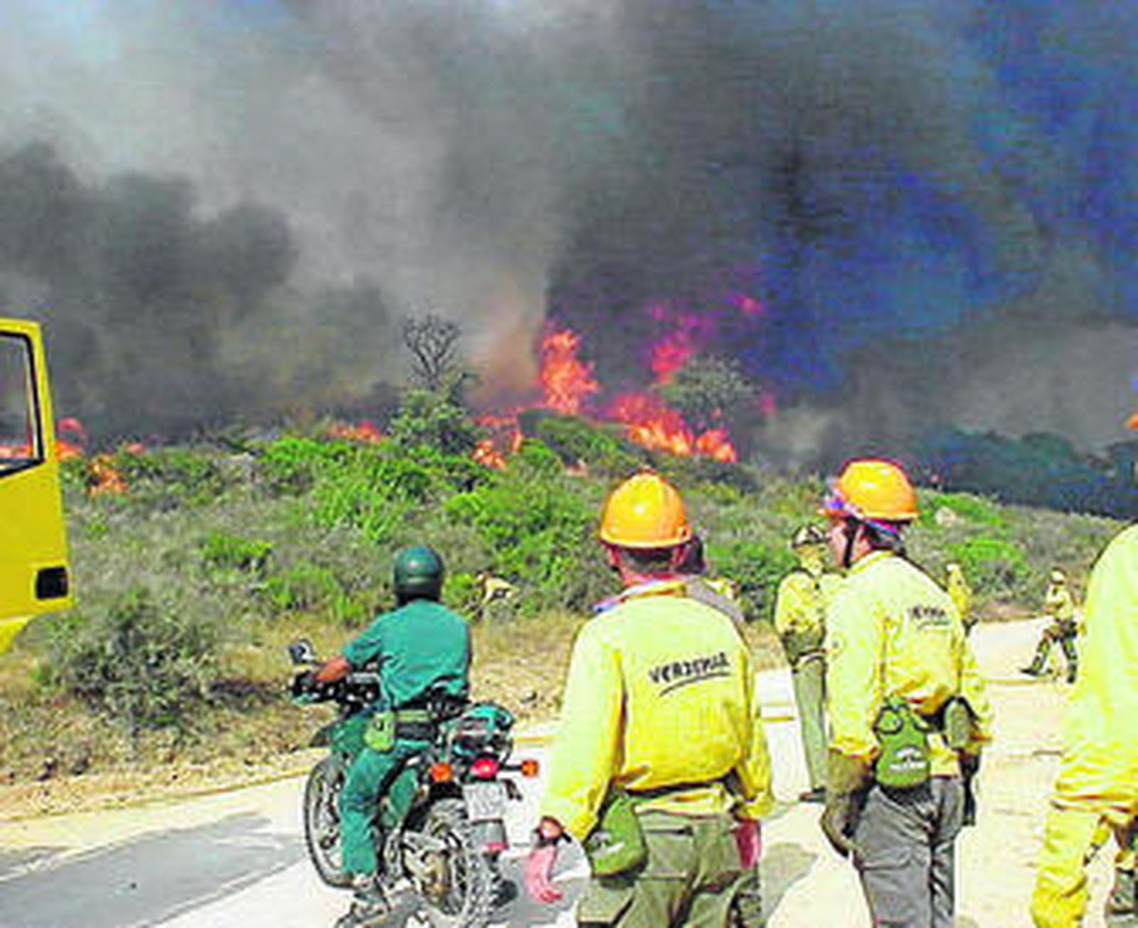 Voluntarios que extinguen fuegos