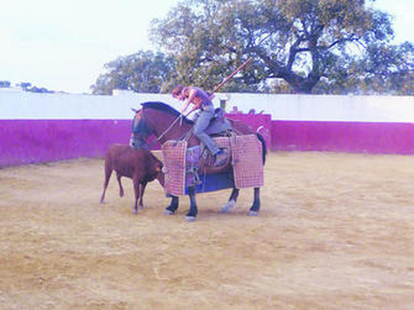 Alejandro Morilla nos cuenta que está a tope de ganas, como ya se le vio en la corrida de feria o en todas las actuaciones que ha tenido por esta zona desde su triunfal alternativa en Sanlúcar. Exprimió al máximo al toro de Osborne, al que despenó de una fenomenal estocada tras un gran trabajo de Antonio Ocaña y Marcos Cruz en la brega y Guillermo Rosales, que picó de modo superior. La luz poniente nos dejó sin foto pero tantas ganas tenía el torero que hasta probó con la vara de detener tentando a una becerra. Alejandro explica que lo primero es la profesionalidad, y para dirigir la suerte de varas desde abajo, también hay que subirse alguna vez al caballo. Conocimiento de causa.
