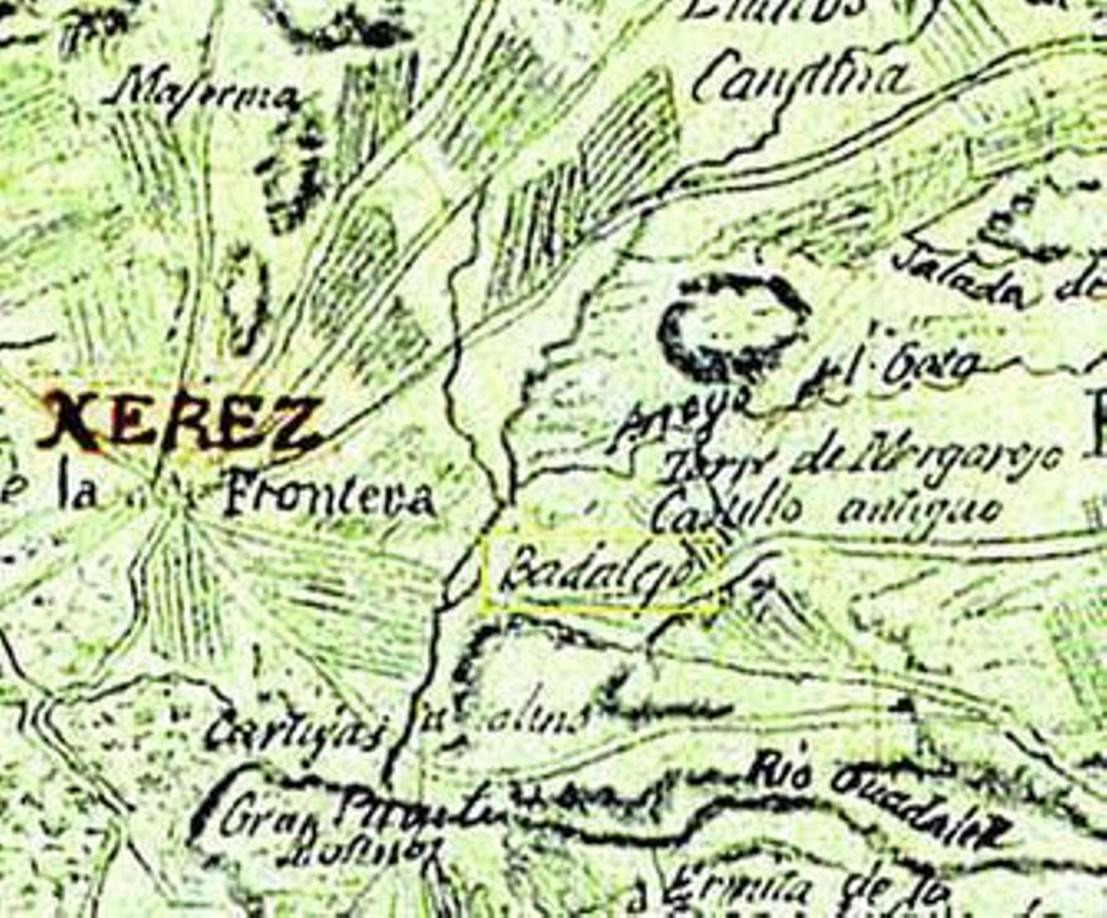 La primera vez que aparece en un mapa el río Badalac, como distinto del Guadalete, es en un mapa encontrado dentro del libro del historiador jerezano Bartolomé Gutiérrez 'Reflexión sobre la opinión admitida por el m.r.p. Mro. fr. Enrique Florez, que niega la identidad de Asta con Xerez de la Frontera. (Que dedica rendido al muy ilustre caballero d. Nicolas Carrillo de Mendoza, marqués de Alcocevar, y Corregidor de esta Ciudad)'. Año de 1754. Se encuentra en la Biblioteca Municipal de Jerez.