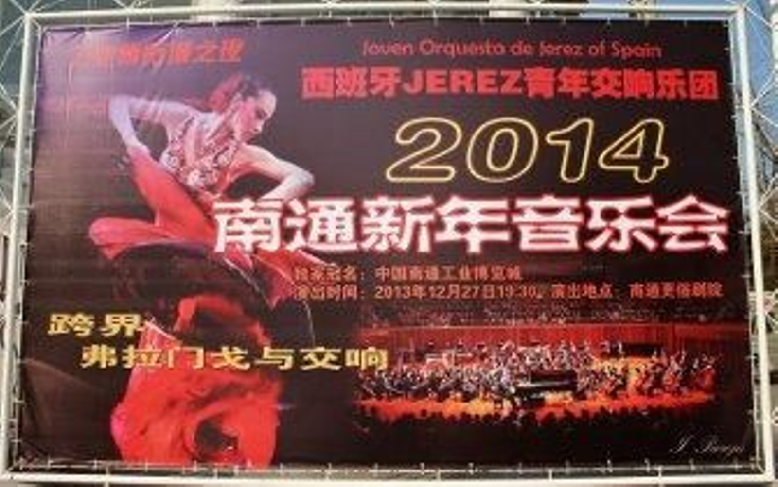El primer concierto fue en el Gran Teatro de Nang Tong, donde unos macrocarteles luminosos difundía el evento y atraía al público. Unos 2.000 espectadores llenaron el coliseo donde el escenario lucía un decorado alusivo tanto a la Orquesta como al grupo flamenco. Entre los letreros escritos en chino, una palabra destacaba entre todas, Jerez, en español, como centro de atención.