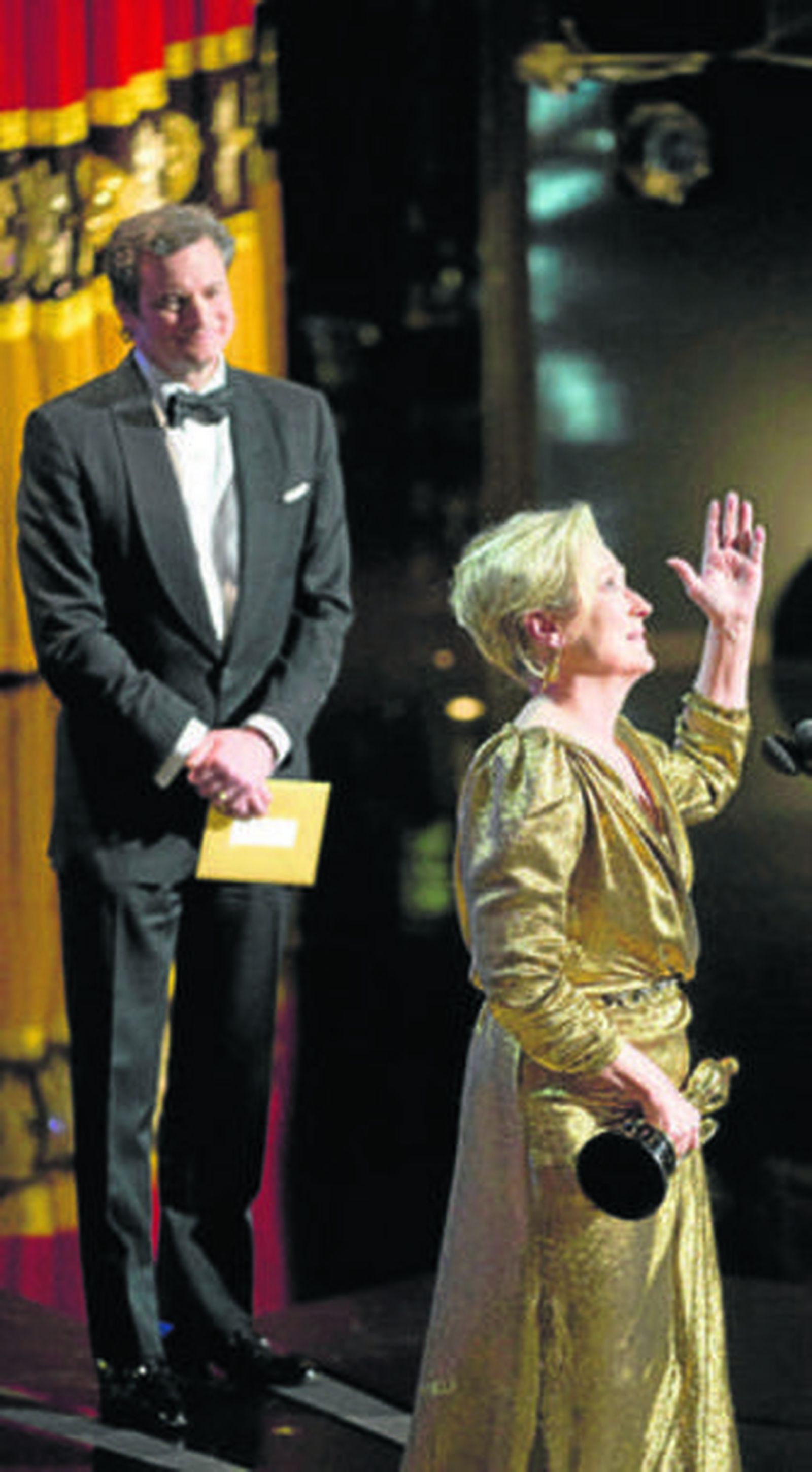 Meryl Streep, otro rostro inamovible de toda ceremonia de los Oscar que se precie, subía por fin después de 30 años otra vez a por un premio. "Puedo oír a medio Estados Unidos diciendo: Oh no, otra vez ella'", bromeaba la ganadora. Y pasaba rápidamente a lo sentimental para dedicar a su marido su premio a la mejor interpretación femenina por su papel en The Iron Lady (La Dama de Hierro), donde se mete en la piel de la antigua primer ministra británica Margaret Thatcher.