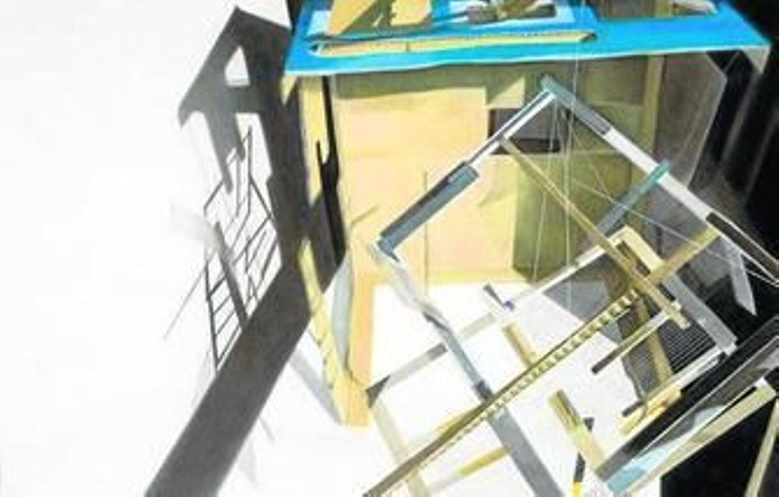 Magdalena Bachiller juega con el concepto de la realidad. Por eso, parte de una instalación o maqueta, realizada con materiales extraídos del entorno, desechos de la propia sociedad en la que se habita, que abren las perspectivas visuales y dejan entrever escenografías donde lo real puede asumir su carga potencial de virtualidad. Pero la artista jerezana no se queda en el mero proceso estructural que proporciona la intervención espacial sino que incide en el propio proceso que ésta posibilita, creando una serie de pinturas y dibujos donde esta retícula de estructuras, patrocina un nuevo complejo escenográfico con una propuesta hacia contrarios. Hay presencias y ausencias, espacios vacíos donde la incidencia lumínica crea misteriosas proposiciones y nos adentra por una poética de lo metafísico, esos escenarios de intensidad conceptual donde la ausencia humana promueve situaciones especiales que hacen potenciar el recuerdo, la evocación de una humanidad ausente, pero con mucha mediata presencia.