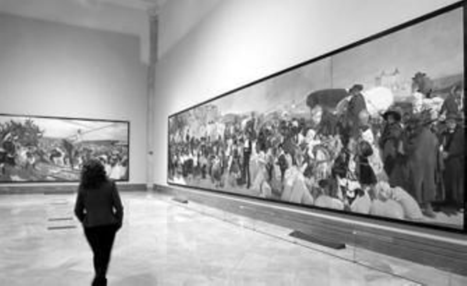 Además será histórica también porque es la primera vez que estos catorce enormes lienzos, algunos de ellos de tamaño mural, es la primera vez que salen de la Hispanic Society de Nueva York y será la última, ya que esta institución no es partidaria de que vuelvan a salir, para lo cual, en este caso, se han debido fletar aviones y camiones especiales y suscribir una póliza que los asegura en más de 100 millones de euros. De las catorce obras, cinco están inspiradas en Andalucía y tres de ellas en Sevilla, las tituladas 'El baile', 'Los toreros' y 'Los nazarenos', mientras que 'La pesca del atún' se inspira en Ayamonte (Huelva) y 'El encierro' también en Andalucía. La pesca del atún' es la única de todas que Sorolla pintó en su misma localización, ya que durante ocho años, entre 1911 que se le hizo el encargo y 1919, recorrió toda España tratando de captar la esencia del país.