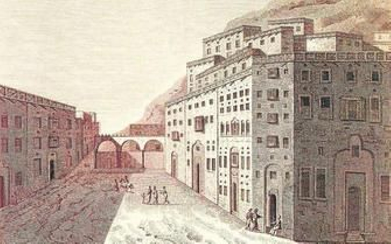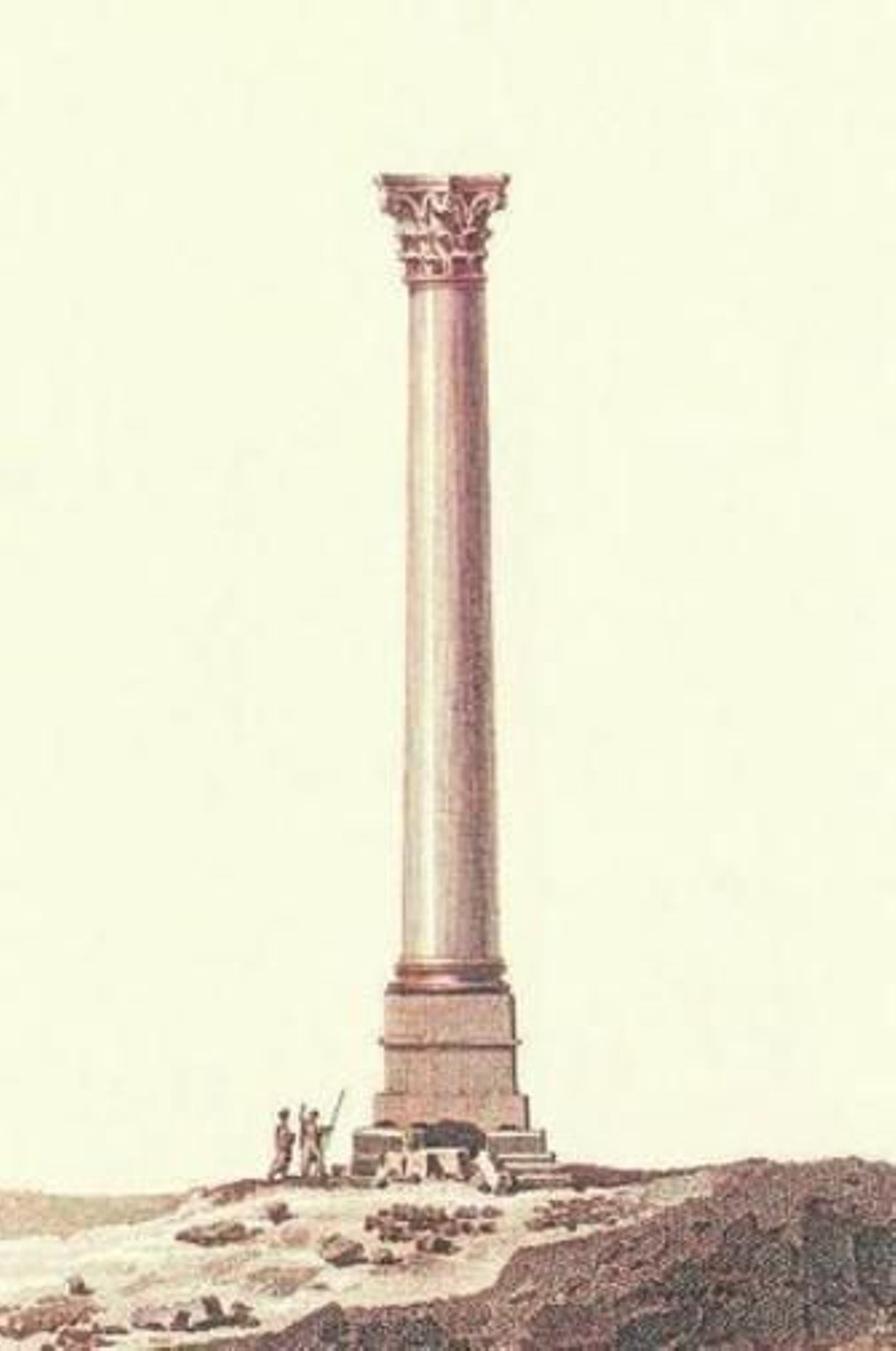 1. Una de las ilustraciones de Alí Bey de un lugar sagrado llamado Safa, en una calle de La Meca, uno de los sitios que el viajero describió con exactitud en sus textos. 2 y 3. La Columna de Pompeyo, en la visión del explorador y en una imagen tomada en la actualidad: dos estampas que demuestran "la precisión absoluta del dibujo de Alí Bey".
