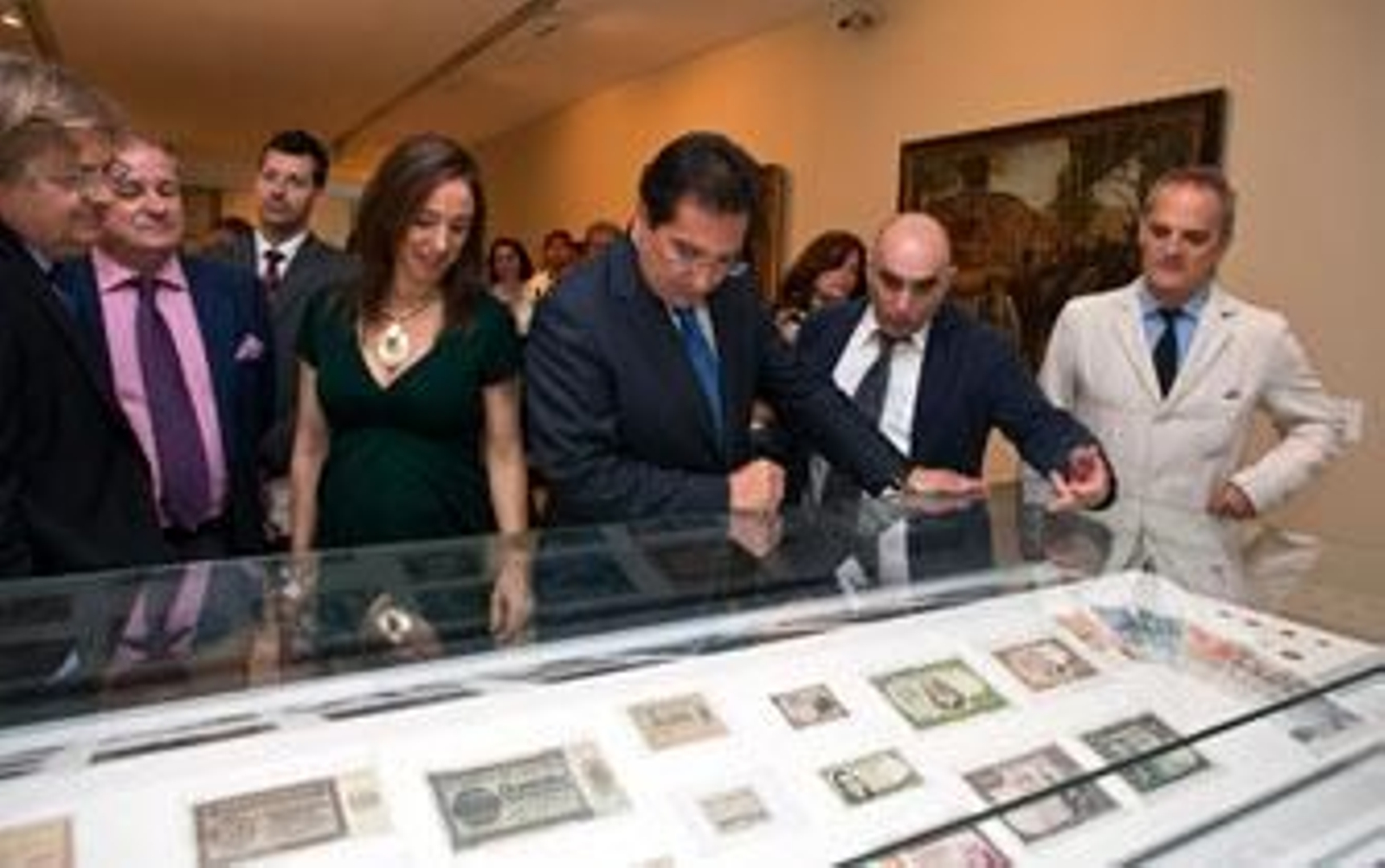 El presidente de Cajasol, Antonio Pulido, ha inagurado esta muestra conmemorativa que «aglutina dos de los conceptos que se han convertido en señas de identidad, ahorro y progreso».