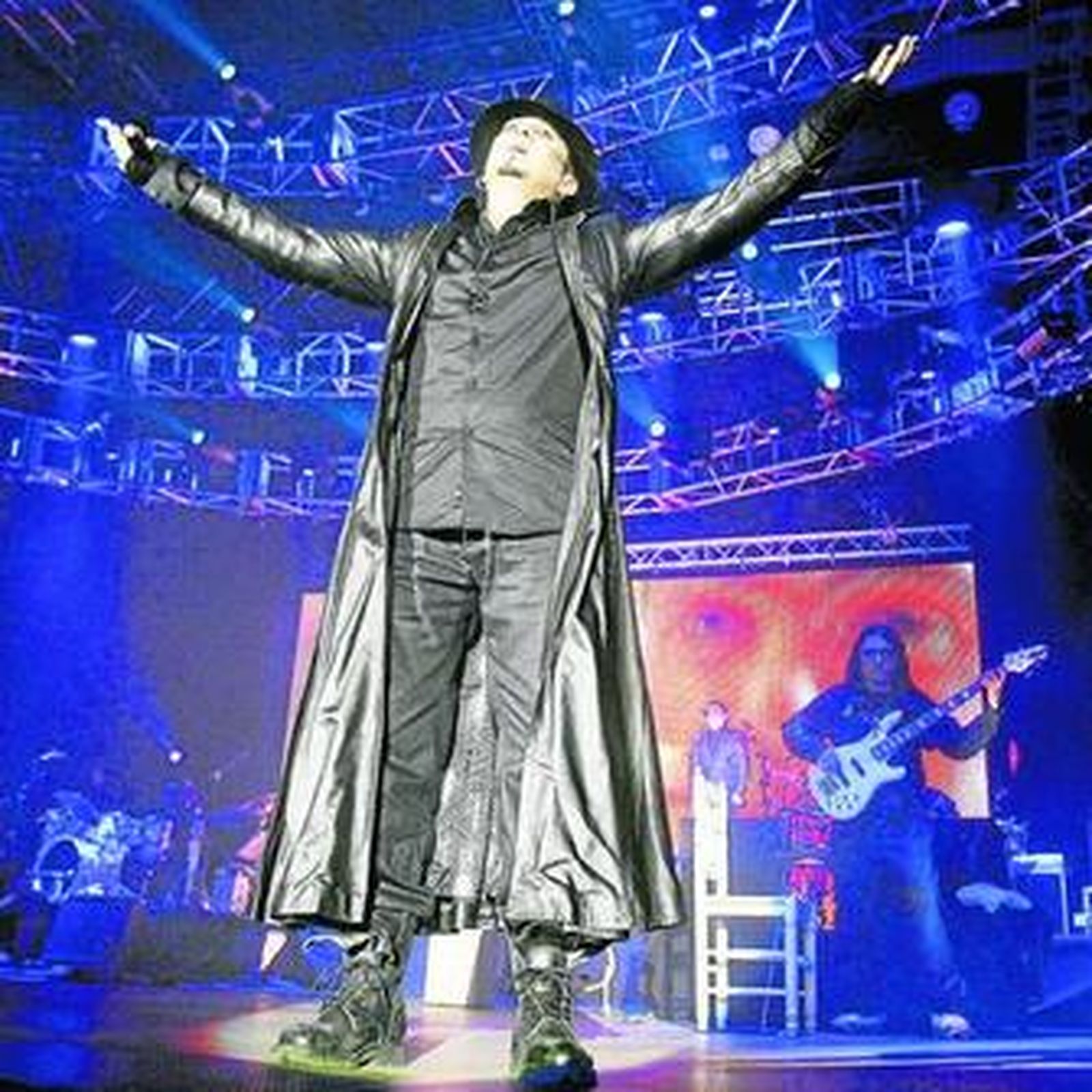 Con ojos pintados de negro, abrigo de cuero largo y como no, su característico gorro, apareció José Luis Figuereo, alma mater de El Barrio, ante las más de nueve mil personas que abarrotaban el Palacio de Deportes a eso de las diez y cuarto de la noche. Fue una explosión de júbilo entre sus fans, que habían esperado horas y horas.
