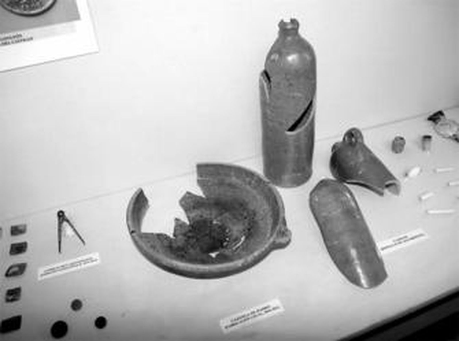En grandes vitrinas, entre otras cosas de la edad del Bronce o prehistoria reciente (siglos III a. C. al siglo IV d. C.) se han expuesto fragmentos de vasijas de cerámicas, fusayolas (pesas), hachas de piedras pulimentadas, dientes de hoz o piezas de molinos de mano.