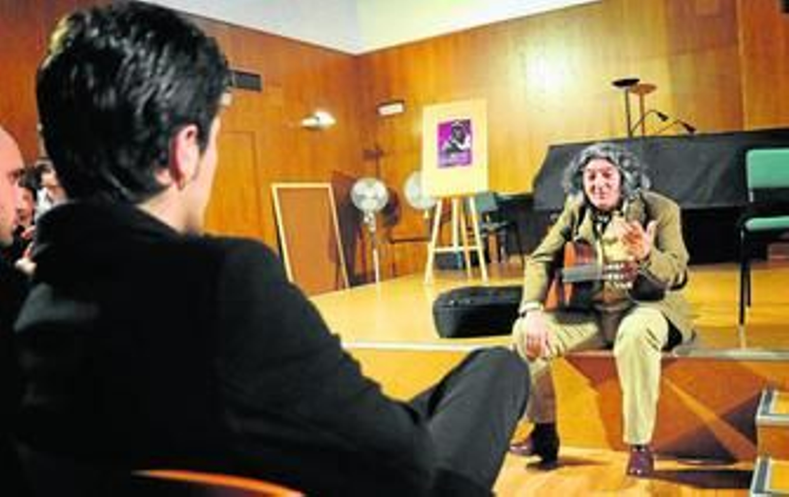 El guitarrista jerezano fue ayer objeto de un homenaje en el Conservatorio como reconocimiento a su dilatada trayectoria en el flamenco · Los alumnos mantuvieron un animado encuentro con el artista