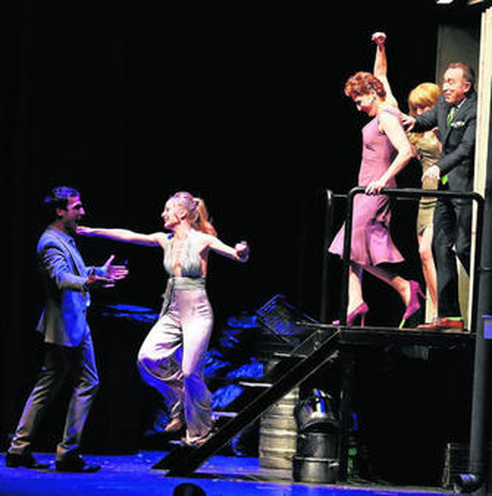 Si algo se logra es un canto a los sentidos. Todos, los cinco, en alerta, pero el olor y la visión en primera línea de agudización, para desengranar movimientos de actores, triángulos de posiciones, luces en claros y oscuros o monólogos definitivos. La participación de los actores es, en todo momento, muy coral, con aciertos en sus apariciones, y elegantes en los mutis. La capacidad del ambiente creado deja clara las diferencias entre el personaje de Alcestes, más uniforme y más tozudo en su planteamiento con el resto. Un culto y una forma muy novedosa de tener presente a los clásicos, pues por momentos, parecen estar presentes Calderón , Shakespeare o cualquiera de los coetáneos del Siglo de Oro europeo, con un buen equilibrio entre la comedia y el drama, que provoca frescura y recursos que hacen estar en vilo a personajes y espectadores. La naturalidad de los personajes, el tono de las vocalizaciones y el perfil conseguido de cada uno de ellos tienen el valor añadido de estar en la cima emocional propia de cada personaje en todo momento, con mayor carga de figurinismo en los personajes varones y más de sensualidad en las féminas. La apuesta escénica es rica en movimientos, como en efectos visuales sobre los dioramas y la carga envolvente de la puerta de emergencias de la disco es una bocanada de aire sucio cada vez que se abre y de isla desierta cada vez que se cierra. La iluminación muy rica, aprovechando todos los ángulos y con todas las posibilidades, haciendo de las sombras, efímeras protagonistas al usar los focos hacia los fondos.