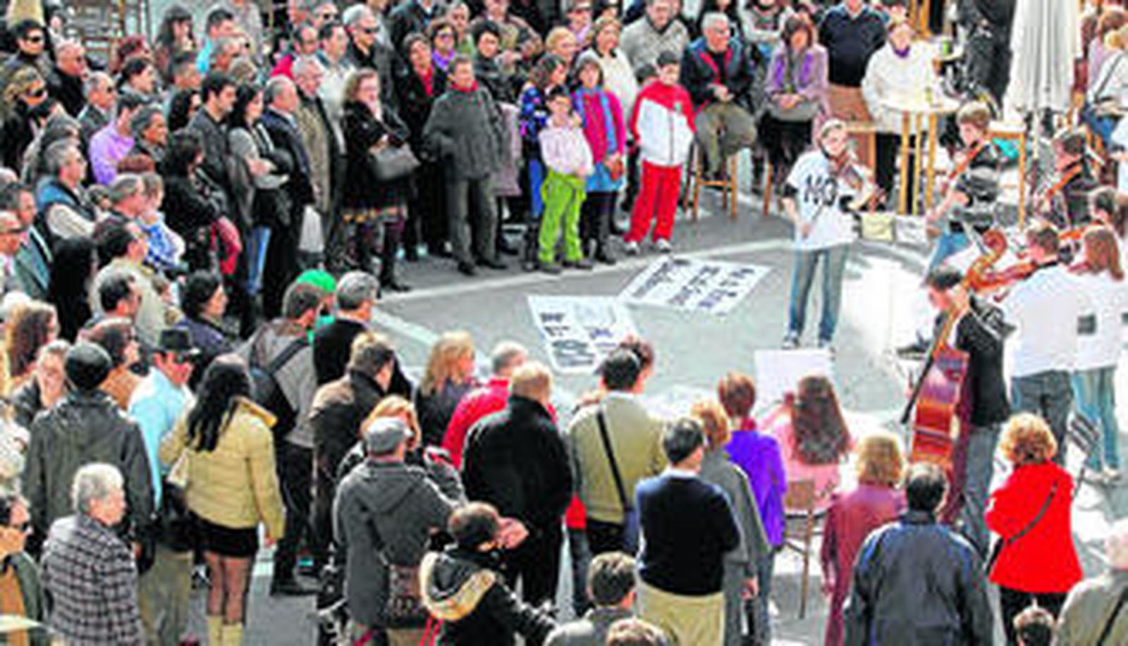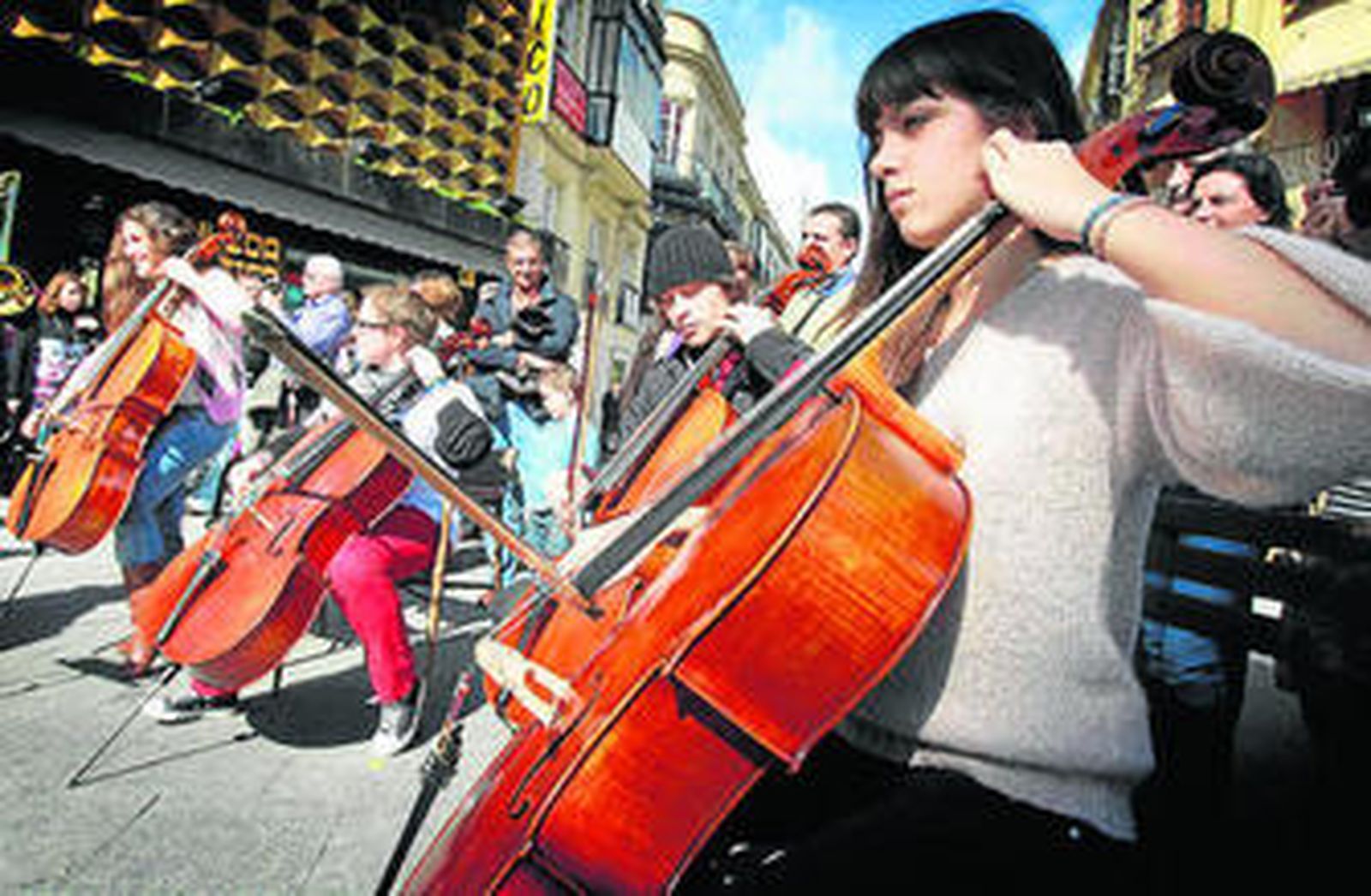 El calendario de concentraciones de los músicos pertenecientes a la Orquesta Joven de Andalucía y al Joven Coro en protesta por los recortes presupuestarios de la Consejería de Cultura [la partida en 2011 para ambas formaciones se limita a 250.000 euros en total] se anunció el pasado 16 de enero, casi un mes antes de que el consejero Paulino Plata presentara, el pasado viernes, su plan de reordenación para estos proyectos tras la destitución de su director, Michael Thomas. Y a la luz de la sonora protesta de más de 40 músicos que acogió el centro de Jerez, como punto representativo de la provincia de Cádiz, -y de manera simultánea, otros céntricos enclaves en las principales capitales andaluzas- los miembros de la OJA no han visto necesario desconvocar estas manifestaciones. Muy al contrario. Al concierto-protesta de ayer le sigue el del próximo 28, a las Puertas del Parlamento y el Teatro de la Maestranza, tradicional fecha de cónclave del Gobierno autonómico y la sociedad andaluza. Para esta cita está previsto que se concentren en Sevilla intérpretes y profesionales de toda Andalucía en defensa de un proyecto formativo que nació en 1994 y que goza de enorme prestigio. Las estadísticas así lo reflejan: más del 60% de los alumnos que han pasado por la OJA trabajan como profesores en conservatorios de la comunidad y el 25% integra orquestas profesionales, no sólo españolas.