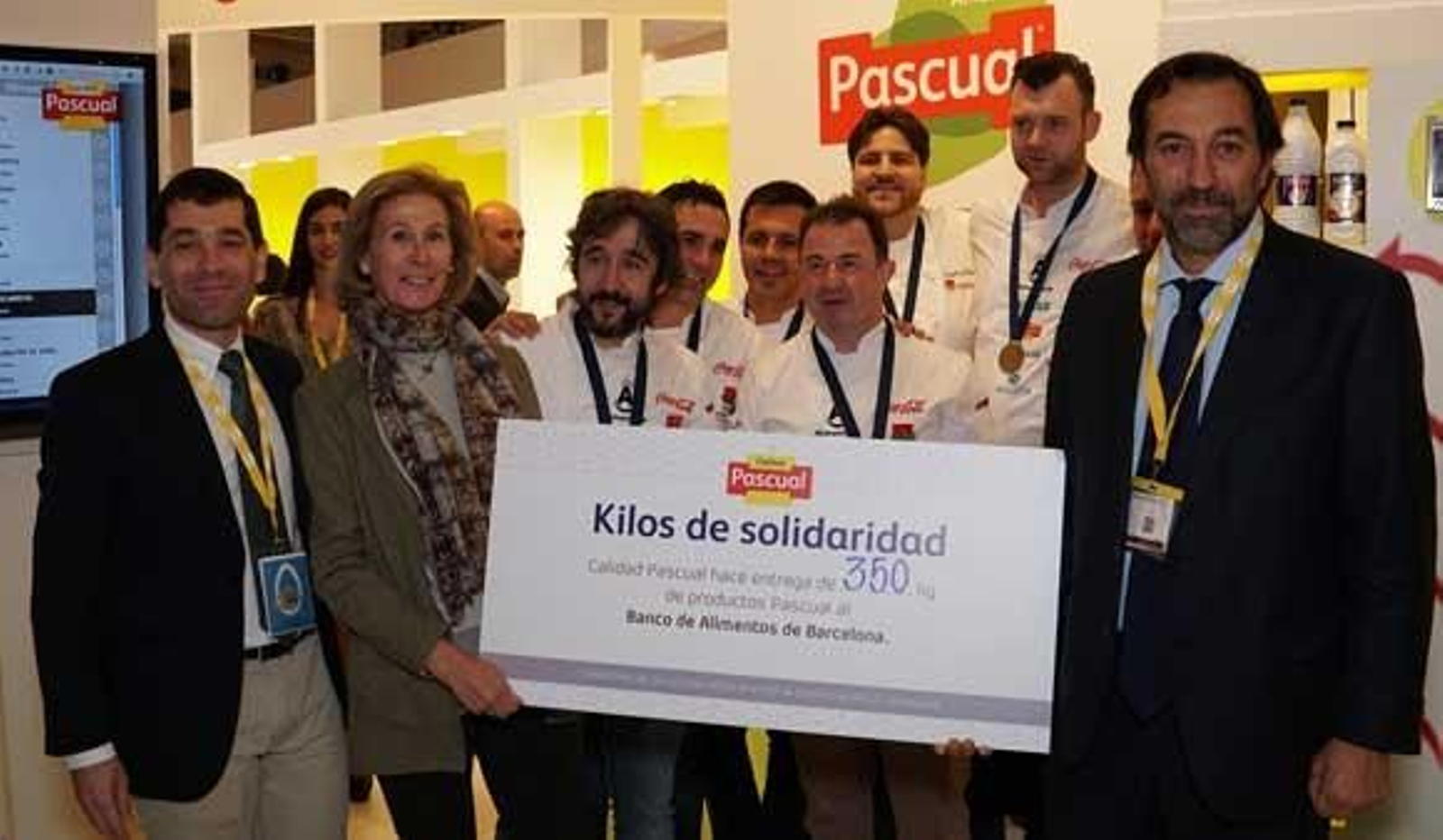 Los renombrados chefs del jurado visitaron el stand de la compañía arandina y se subieron a una báscula cargada de solidaridad junto a Ignacio García-Cano, director general ejecutivo de Calidad Pascual. Los kilos solidarios que sumaron entre todos se han transformado en productos Pascual que se donarán al Banco de Alimentos de Barcelona para que los reparta entre aquellos que más lo necesitan. Roser Brutau i Basté, su vicepresidenta, ha recibido el cheque acreditativo de mano de García-Cano.