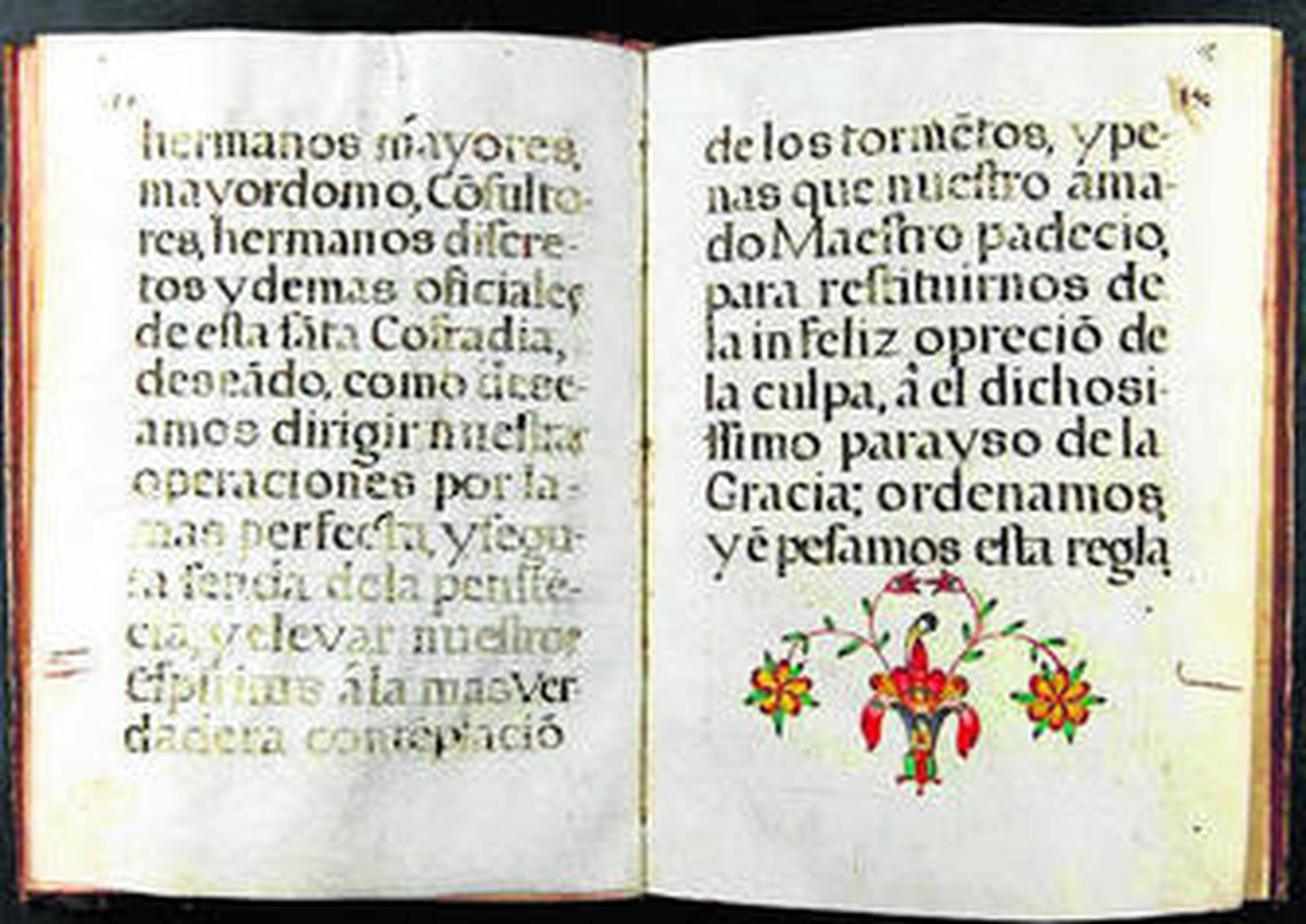 "Cada hermandad -apunta- tenía su Libro de Reglas que mandaban a elaborar con más o menos lujo dependiendo del presupuesto. Este tipo de manuscritos o códices estaban hechos para perdurar en el tiempo ya que se trataba del documento más importante dentro de la cofradía, por ello se hacían con pergamino y encuadernados en piel. Es la principal fuente jurídico-normativa de su gobierno". La reglas son el cuerpo doctrinal y administrativo por el que se debían regir los hermanos, y contempla un buen número de capítulos que aleccionan y obligan a los mismos a su cumplimiento.