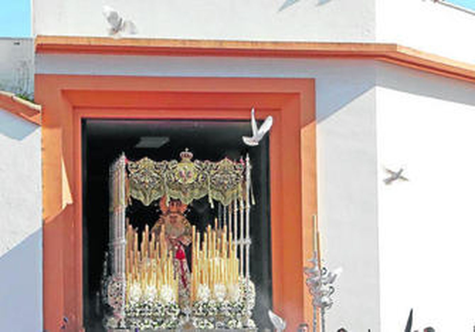 En la puerta, la gente de La Plata no pierde las ganas por ver a su Virgen. La roteña Banda Municipal Maestro Enrique Galán, comienza a formarse al lado derecho de la puerta de la parroquia. Una vez fuera, los costaleros en el balcón soltaron varias palomas blancas. Precioso ese fervor de barrio que no se ha acabado, ni por asomo, con la imagen de Jesús de las Misericordias. Con esa misma alegría, y el arte de Mariano Tizón al llamador, el palio avanza hacia la rotonda, ese palco de varios pisos en el que los más jóvenes, móviles en mano, han esperado desde hace horas la salida de su cofradía.