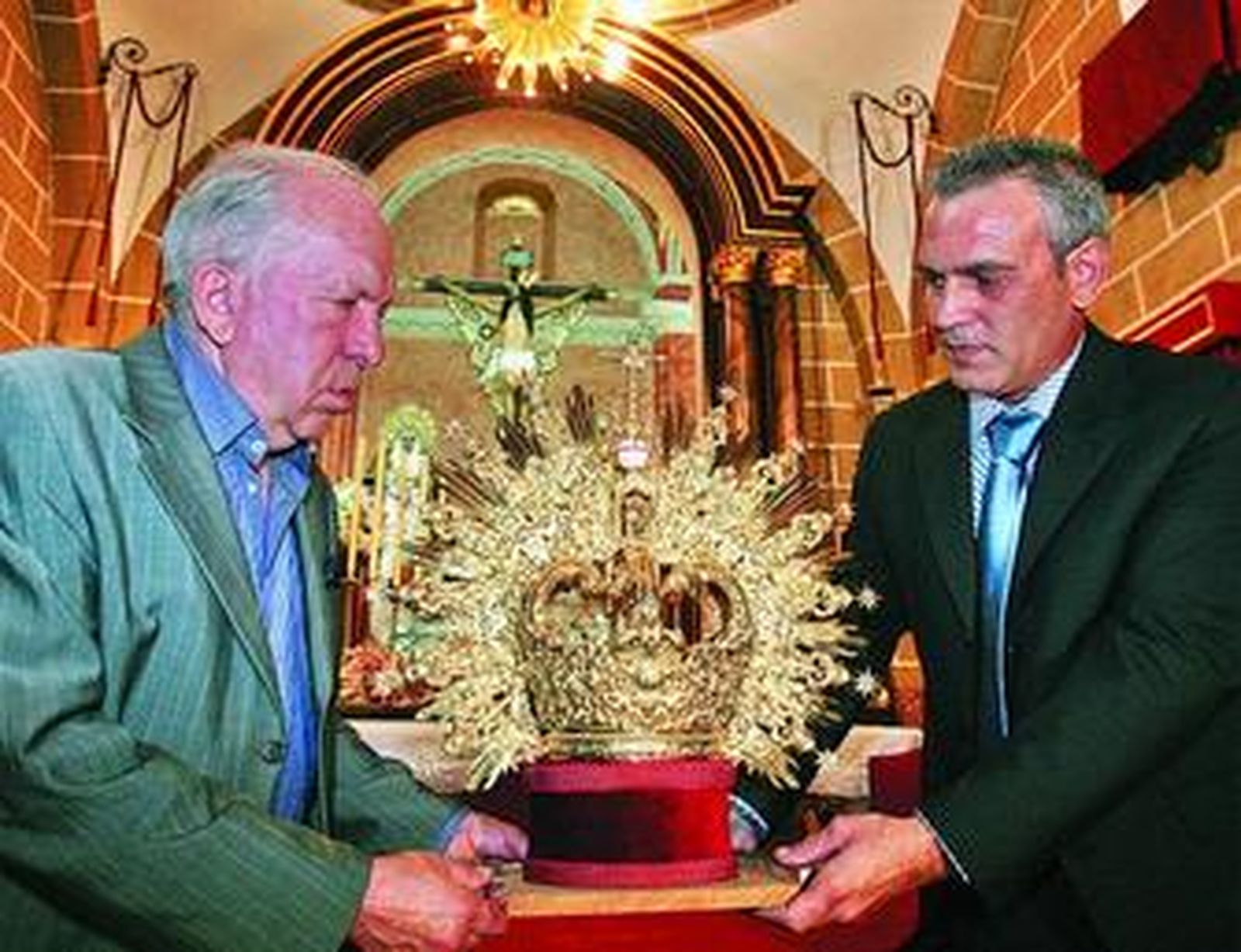 La corona que le será impuesta al Valle el uno de noviembre resplandeció ayer muy cerca de la imagen a la que en muy poco tiempo le será impuesta. San Telmo acogió un entusiasta acto de presentación que fue capaz de reunir a varias decenas de hermanos y curiosos, seguramente muchos de los donantes del oro con el que se ha creado la corona, para ser los primeros en ver de cerca la obra que ha salido de las expertas manos de Juan Borrero, el orfebre que ha dado forma a los cuatro kilogramos del precioso metal que han sido necesarios para este trabajo. La corona estuvo en una urna cubierta con una bandera de Jerez en el altar mayor hasta que fue retirada para dejar ver la impresionante pieza que responde fidedignamente al proyecto inicial del mismo artista.