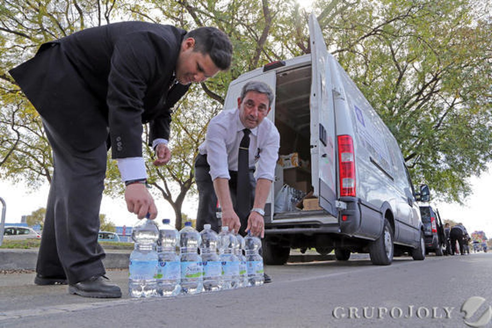 Los costaleros son otro de los aspectos a cuidar en una hermandad de tan largo recorrido. "Dos cuadrillas más los picos", resalta uno de ellos momentos antes de que den las 3 de la tarde. Antonio Salvador, hermano mayor, ya había advertido la misma cifra. El hecho de que no se les permita entrar antes en la parroquia es más que evidente con tal número. Más si se asiste a la llegada de estos hombres desde la plaza Ubrique, primer punto de encuentro con el capataz. Una marea de molías arrasa hasta ubicarse en el patio de la guardería colindante. En anteriores ocasiones, los costaleros se refugiaron también en el porche del CEIP Antonio de Nebrija. Una vez en el patio del centro infantil se reparten los puntos de relevos. Son constantes, y el primero se hace antes de llegar a la rotonda de la periferia granjera. Salvador fue el primer capataz de la cofradía y recuerda que "lo hacemos así para que los costaleros no se enfríen durante el recorrido".