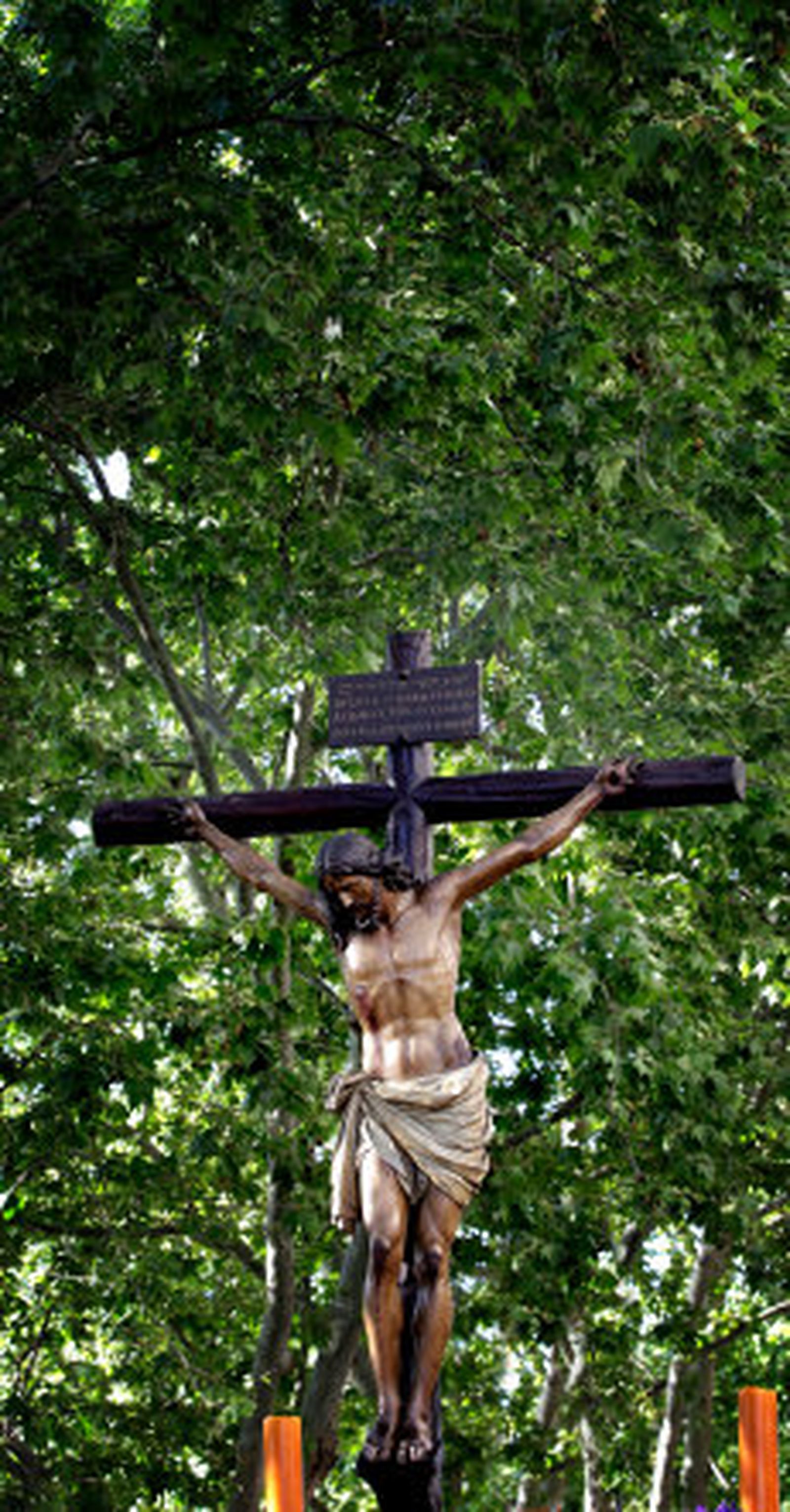 Tras ellos, el paso del Cristo de los cuatro clavos, el imponente crucificado que tallara José Esteve Bonet, sobre un monte 3.100 tallos de iris morados. A las órdenes de Francisco Javier Franco, 33 hombres se disponen para mostrar a Jerez que hay alguien que los puede defender de todo mal, siguiendo una de las más hermosas tradiciones del Antiguo Testamento, la del go'el, el defensor tras el Señor de la Defensión, un palio de respeto de estreno y la banda de cornetas y tambores de la Centuria Romana de la Macarena.