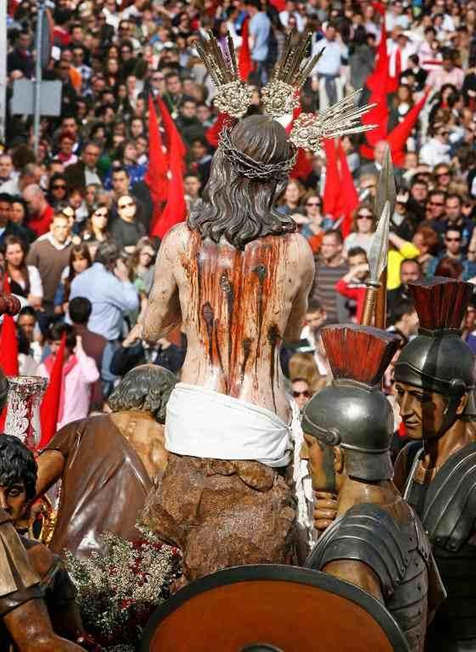 Los Judíos, como es más conocida popularmente, es la hermandad que puso en pie el barrio de San Mateo . Tiene todos los elementos que la sitúan entre las grandes. Así se puso ayer una vez más de manifiesto con su salida procesional que se rodeó de todo lo que es consustancial a esta cofradía, con un enraizamiento que supera el barrio para extenderse por toda la ciudad. Buena muestra de ello fue el cortejo, numeroso como siempre, y con todo el calor de la muchedumbre que es inherente a esta hermandad. San Mateo es el emblema que mejor define la esencia del Desconsuelo. Es más que la sede canónica de la hermandad; es una clara simbiosis nacida en el pasado, sigue ahora y se proyecta hacia el futuro. La clásica estampa de una plaza llena hasta en cualquiera de sus esquinas, unos nazarenos de capirotes rojos y unos pasos en los medios de San Mateo, se repitió con la presencia del obispo diocesano que vio la salida desde dentro. Los Judíos se echaba a la calle con la solvencia que la caracteriza, con buena organización del amplio cortejo y por un recorrido más que sugestivo por el Jerez antiguo: Mercado, Justicia, San Juan, callejas de siempre en las que se funde con un entorno inigualable y que señala su origen y que en 2013 cumple 300 años de existencia. El paso de misterio, tras sortear la dificultosa salida donde tiene que salvar guardabrisas y costeros, se puso en la rampa de salida para que el Señor recibiera las primeras saetas desde la casa de hermandad. Y esta hermandad es grande por su devoción mariana que se plasma en El Desconsuelo que también en 3 años llegará a los 300 años de su bendición. El maravilloso palio de la Virgen también superó con pericia el dintel del templo y se presentó ante las miles de personas que esperaban su presencia bajo su palio juanmanuelino, y con un especial protagonismo del manto que no veremos en dos años ya que en unos días va a Sevilla para su restauración. La pura armonía del palio fue atravesando la muchedumbre al ritmo de la música cofrade de Virgen del Castillo de Lebrija evocando a su paso la identidad del Martes Santo.