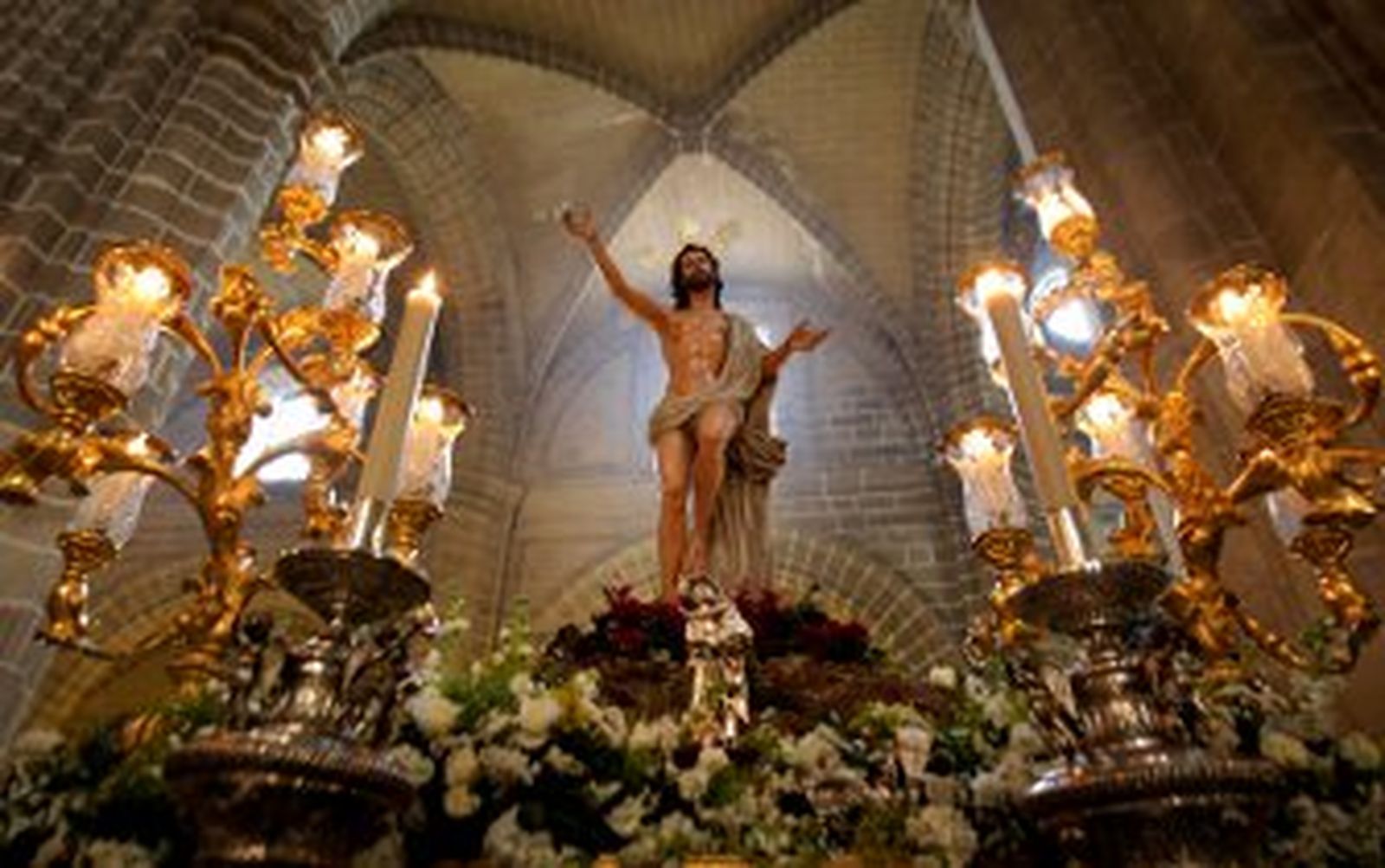 En unos 45 minutos la hermandad del Cristo de la Expiración llevaba a cabo el traslado de sus imágenes titulares a la Ermita de San Telmo desde San Miguel. Como quedó establecido el Viernes Santo, esta cofradía citó a sus hermanos a este regreso a las cinco de la tarde de ayer, tras refugiarse en este templo a causa de la lluvia. Pese al mal tiempo, pudo culminar de forma muy rápida la vuelta a su sede canónica. Antes, por la mañana, la otra cita del día, la procesión del Resucitado, quedó suspendida por el riesgo de precipitaciones. Sólo se llevó a cabo el traslado de la imagen en su paso desde la nave lateral, en la que se encontraba dispuesto para la salida, hasta un lateral del altar mayor, mientras que desde el exterior la agrupación de San Juan interpretaba un par de marchas para acompañar esos minutos. Así se cumplió con la preceptiva procesión del Resucitado que establece la liturgia del día.