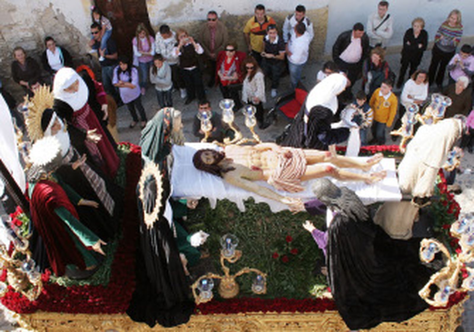 Santa Marta, patrona de la hostelería, ha vuelto a contar con una nutrida representación del gremio en la presidencia del paso de misterio, exquisitamente exornado con claveles rojos de sangre toro, contrastando con las rosas pálidas del Palio de Madre de Dios del Patrocinio; como han contrastado los sones sobrios de la capilla musical en el traslado del cuerpo de Cristo al Santo Sepulcro y el repertorio exquisito y de calidad de la Banda Municipal 'Enrique Galván' de Rota, que ha recibido esta mañana la insignia de oro de la Hermandad, ya que llevan diez años ininterrumpidamente prestando su acompañamiento musical a la Hermandad.