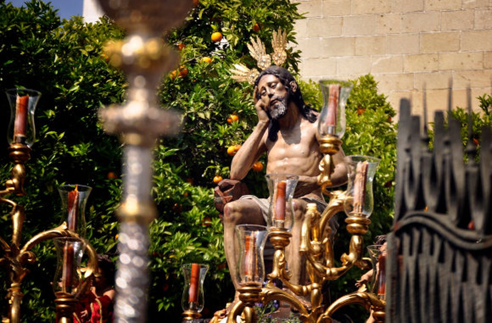Basados en el hábito trinitario, los nazarenos de Humildad y Paciencia rellenaban de un blanco silencioso el patio de entrada al templo y ponían camino, poco a poco, a la calle de la Santísima Trinidad buscando la tan ansiada Carrera Oficial. Y a pleno sol, la sencilla canastilla del Santísimo Cristo de Humildad y Paciencia rachea su salida por la puerta de la que ha sido siempre su templo. Sin aplausos ni vítores, esta hermandad deja un pellizco cofrade allí por donde pasa sin necesidad de grandes artificios ni levantás al cielo. Rezo, música de capilla y sabor a solemnidad cofrade.