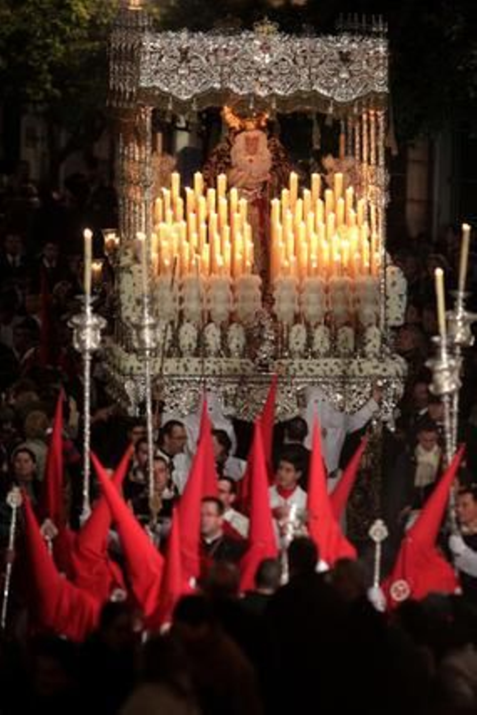 Si el misterio que va por delante de La Paz y Concordia es una joya, atrás no le va a la zaga el palio de la Virgen, una obra de enorme categoría y de gran originalidad, desde la orfebrería hasta los bordados de Elena Caro. Todo ideado con gran gusto y talento cofrade. Y todo fue bien hasta la Asunción, donde la cofradía regresó a su templo por Sedería y Tornería, por donde se recogía al cierre de esta edición.