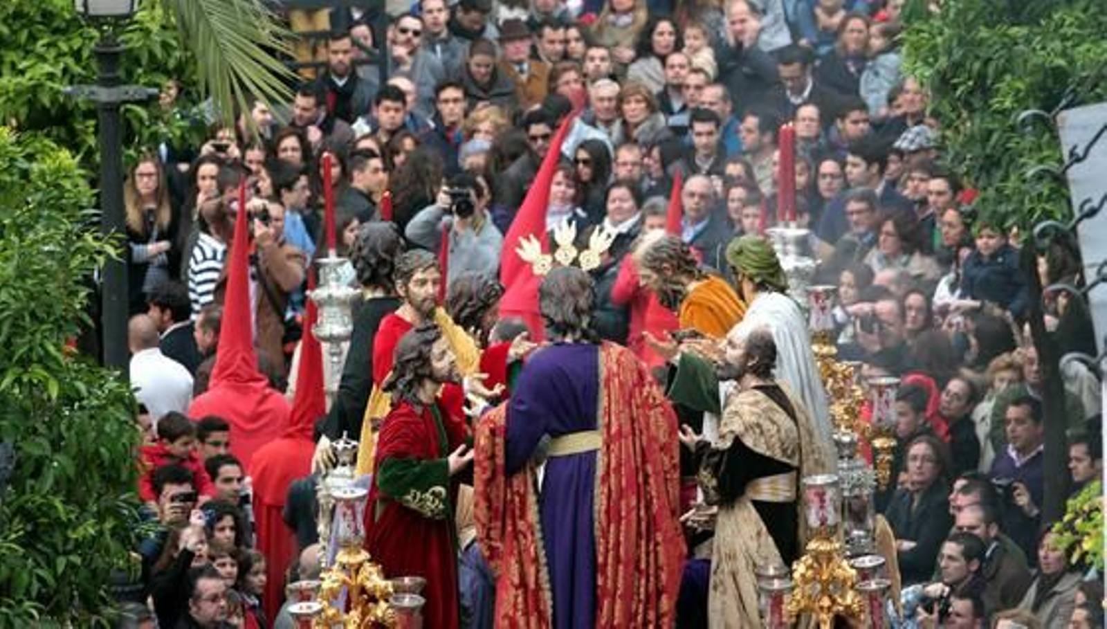 UNA lluvia fina que no fue a más frustró anoche la estación de penitencia de La Cena, que se precipitó a la hora de regresar a San Marcos después de que un ligerísimo 'chispeo' le sorprendiera en San Dionisio. Quizás sobraran partes y, como decía el padre Valpuesta, faltara azotea, mirar más al cielo. Lo cierto es que hasta entonces el Lunes Santo de Jerez encontró como cada año en San Marcos mucho de lo que tiene esta ciudad en su haber cofrade con una hermandad que cultiva un estilo exquisito en sus formas y de gran hondura en su puesta en escena. No en vano, hablar de La Sagrada Cena es caer en tópicos como sabiduría costalera, armonía cofradiera en las calles, el gentío que no la desampara en ningún instante y otras muchas frases en las que podemos resumir o comprimir aspectos destacados de una cofradía que ayer volvió a concitar el interés de todos desde mucho antes de que la hermandad decidiera echarse a la calle. El Lunes Santo, como apunta a que será toda la Semana Santa, fue un día en el que la lluvia de por la mañana bajó tremendamente los ánimos. Ya por al tarde el pronóstico parecía claro y se decidió seguir el horario establecido.