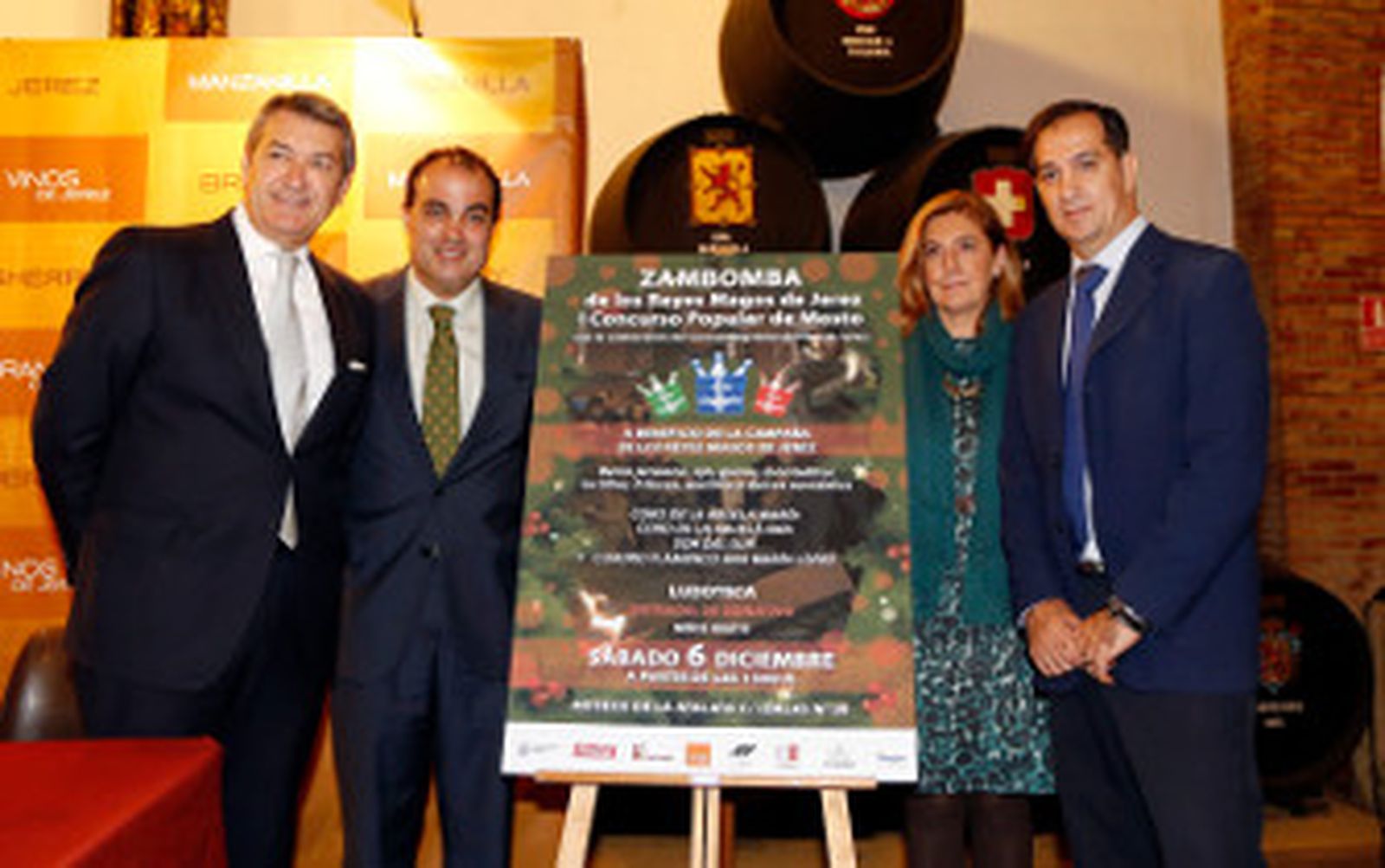A la presentación de la zambomba acudieron ayer los Reyes Magos de 2015, David Fernández, Elena Aguilar y Juan Miguel de la Flor, que encarnarán a Melchor, Gaspar y Baltasar, respectivamente, así como el director general del Consejo Regulador del Vino de Jerez, César Saldaña. La recaudación de la zambomba (se cobrará por entrada un donativo de 3 euros) irá destinada íntegramente a la campaña que los Reyes Magos realizan en la ciudad en vistas al próximo día 5 de enero. Y para animar a los asistentes, la cita contará con la colaboración de distintas formaciones musicales de la ciudad, como el coro de la Abuela María, el coro de la Abuela Ana, Son del Sur y el cuadro flamenco de Ana María López. También se ofrecerán a precios muy populares platos típicos jerezanos, como berza y ajo, acompañados de distintos guisos e incluso pestiños. La organización del evento ha contemplado también la instalación de una ludoteca para que los padres puedan acudir con los más pequeños de la casa (que no pagarán entrada).