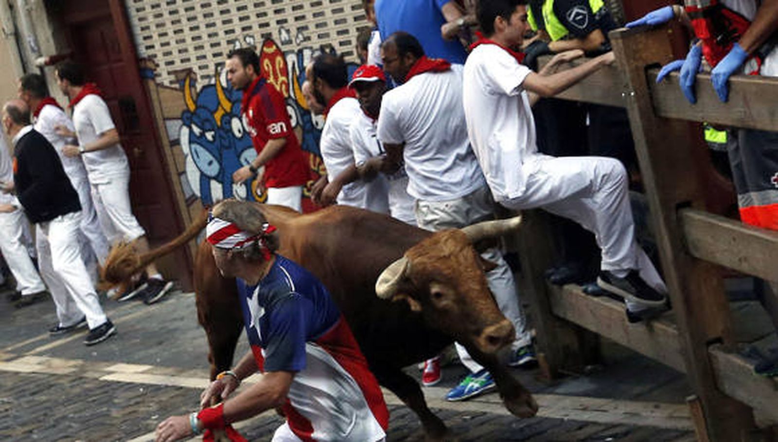 Ha sido en la calle de Mercaderes donde la manada ha comenzado a romperse por completo y sólo dos toros han llegado con relativa normalidad a los chiqueros de la plaza de toros.