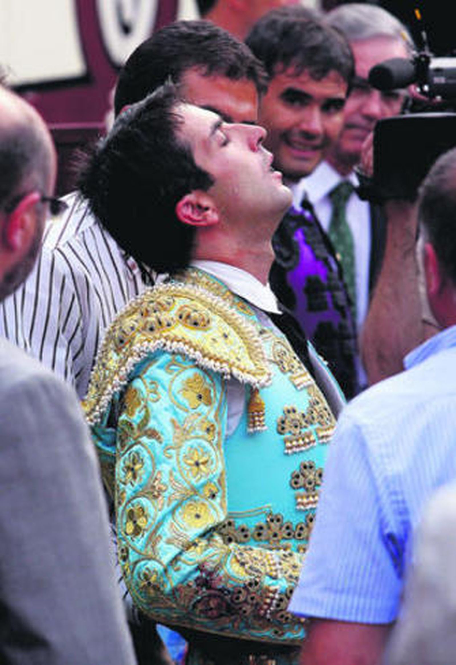 Castaño recibió al enorme y corniabierto segundo con buenos lances a la verónica. El toro hizo una pelea a menos en varas. Increíblemente, el torero perdió la cara al toro, mirando al callejón y haciendo ademán con la mano derecha para solicitar la petición del cambio de tercio. Y Aragonés, un tren de 618 kilos, musculado, tomó la vía a una velocidad más que respetable y lanzó por los aires, como si fuera un pelele, al torero, que cayó de cabeza, doblándose el cuello. Nos vino la imagen de aquella cogida de Julio Robles, por la que quedó atado a una silla de ruedas. Lívido, como si ese Castaño fuera otro, con la mirada perdida y desmadejado, se lo llevaron conmocionado. En el callejón, como único remedio: agua. Increíblemente, tras el tercio de banderillas, Castaño pisaba de nuevo el ruedo. Brindis al público. En los medios, inició la faena aprovechando la inercia del burel, sin clase. Con la derecha atemperó las embestidas en tres tandas en las que contra la violencia y los testarazos opuso firmeza y temple. Con la izquierda brilló en algunos naturales. Al término de la faena, el toro parecía mejor. Pero el diestro no estuvo acertado con los aceros. Recibió unas pírricas palmas. Porque además, con una casta extraordinaria, se negó a pasar de inmediato a la enfermería. Lo hizo en el siguiente toro porque no se tenía en pie. El doctor Máximo García Padrós lo envió a una clínica madrileña para un exhaustivo estudio radiológico de las cervicales.