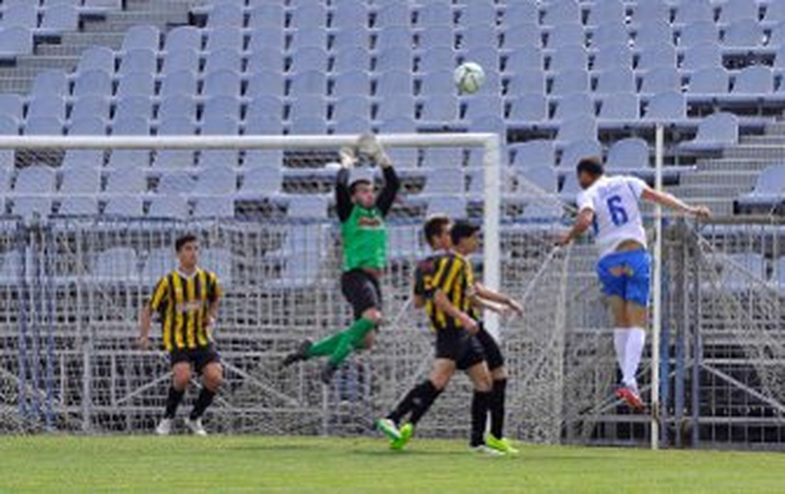 Poco después, fue Pedro (28') el azulino que lo intentó con un duro disparo desde lejos que el portero rechazó y que Quirós mandó alto tras recoger el balón despejado por el meta lepero.