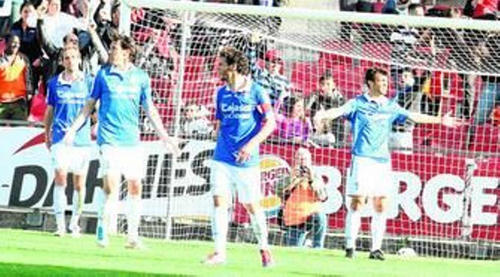 Los azulinos, jugando cómodos y buscando la contra, tuvieron la sentencia en el minuto 26. Rafa Barber robó un balón en campo contrario, lo lanzó para Íñigo Vélez, el ariete vitoriano se lo puso perfecto para José Mari y el sevillano no acierta en el mano a mano ante el portero, que repele con apuros su remate. Aún así, el rechace le volvió a caer al pie y lo mandó fuera.