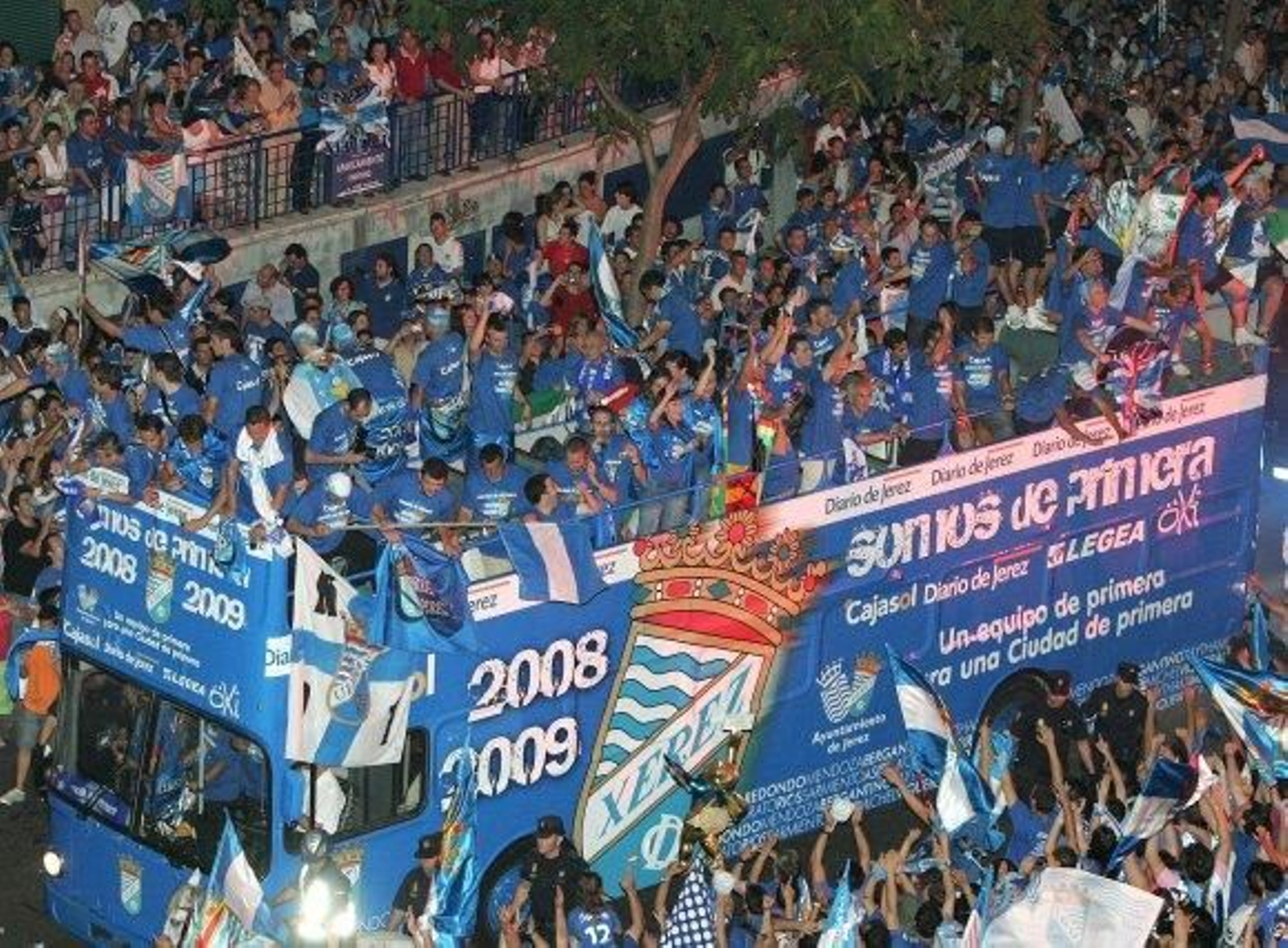 Los lugares claves en las celebraciones de los xerecistas fueron desde poco después de que finalizara el encuentro un hervidero de personas. El Minotauro, la Plaza del Caballo, la Rotonda del Catavino y por supuesto la Plaza del Arenal se convirtieron en auténticos lugares de peregrinación de una multitud de aficionados, que en algunos casos no pudieron evitar las lágrimas de emoción. Sin duda como dato destacable hay que reseñar el comportamiento cívico, salvo contadísimas excepciones, de unos aficionados que demostraron más que nunca que son de Primera. Los jugadores sólo permitieron que se subiesen al autobús los empleados de las oficinas, Joaquín Morales, Monterrubio y Rafa Verdú, que al igual que los principales protagonistas se lo pasaron bomba.