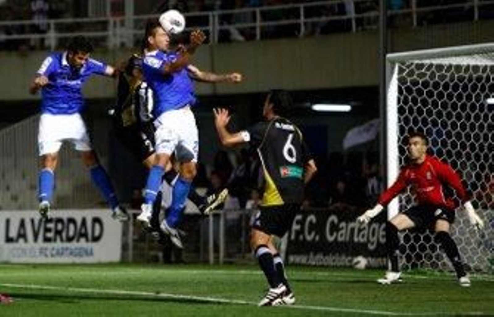 El Cartagena tenía vida y pese a ir con diez seguía arriesgando, no le quedaba otra. Toni Moral, con una volea desde 30 metros intentó sorprender a un seguro Doblas. Quedaban menos de un cuarto de hora y entonces todo era posible.