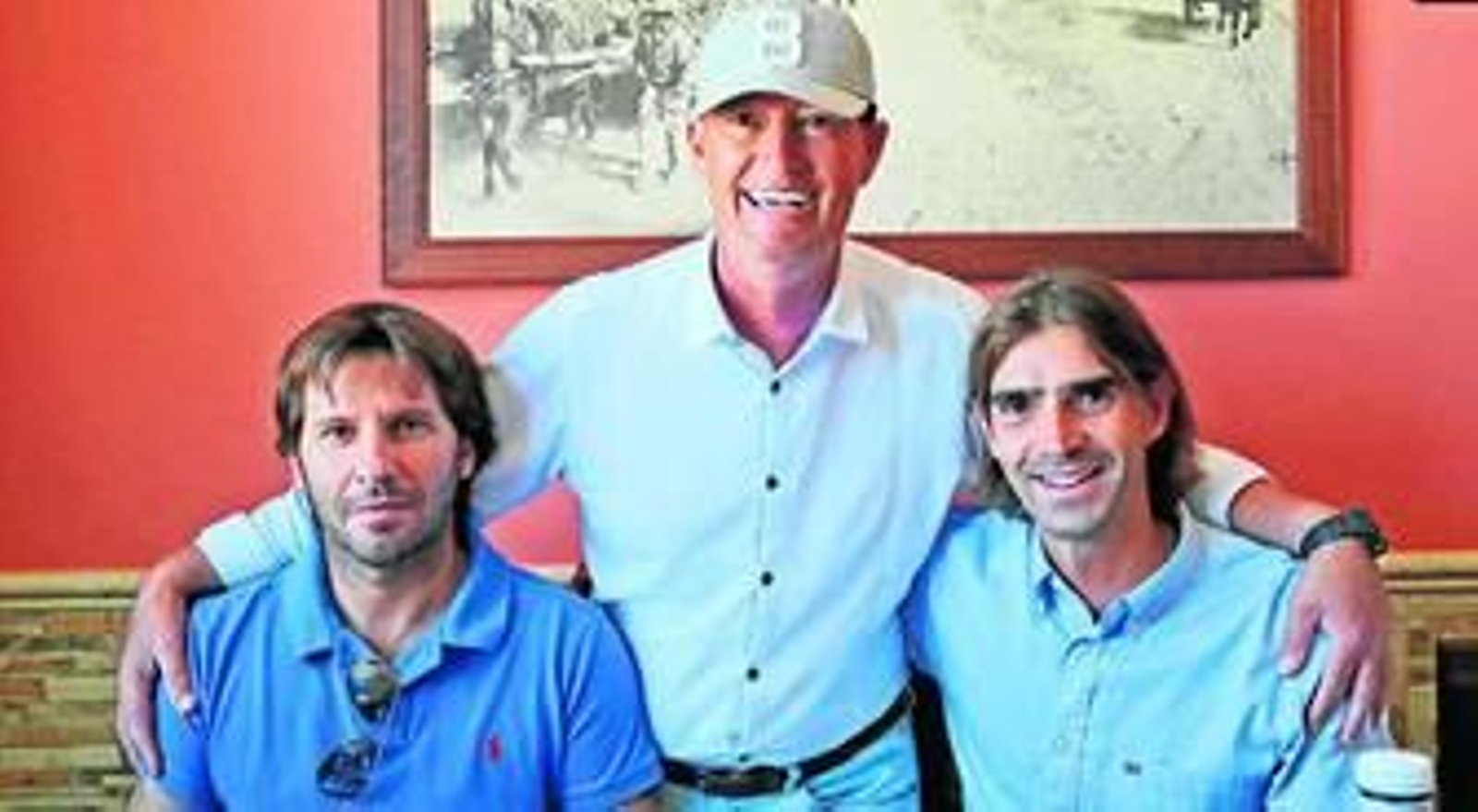 Jesús Mendoza, entrenador del Trebujena, y Dani Pendín, técnico del Xerez Deportivo FC, compartieron vestuario en el Xerez Deportivo durante cuatro temporadas, desde la 02/03 hasta la 05/06, y ayer compartieron confidencias en un almuerzo en el bar El Carmelo de Mesas de Asta. Junto a los preparadores, sus respectivos cuerpos técnicos. Con Mendoza, Toni López y Pablo Setó. Con Pendín, Raúl López y José Luis González. Como maestro de ceremonias, Sebastián Herrera, técnico del equipo juvenil del Trebujena y un entrenador de sobras conocido en la provincia por su impecable y dilatada trayectoria, junto a Manuel Raposo, delegado de Deportes del Ayuntamiento de Trebujena.